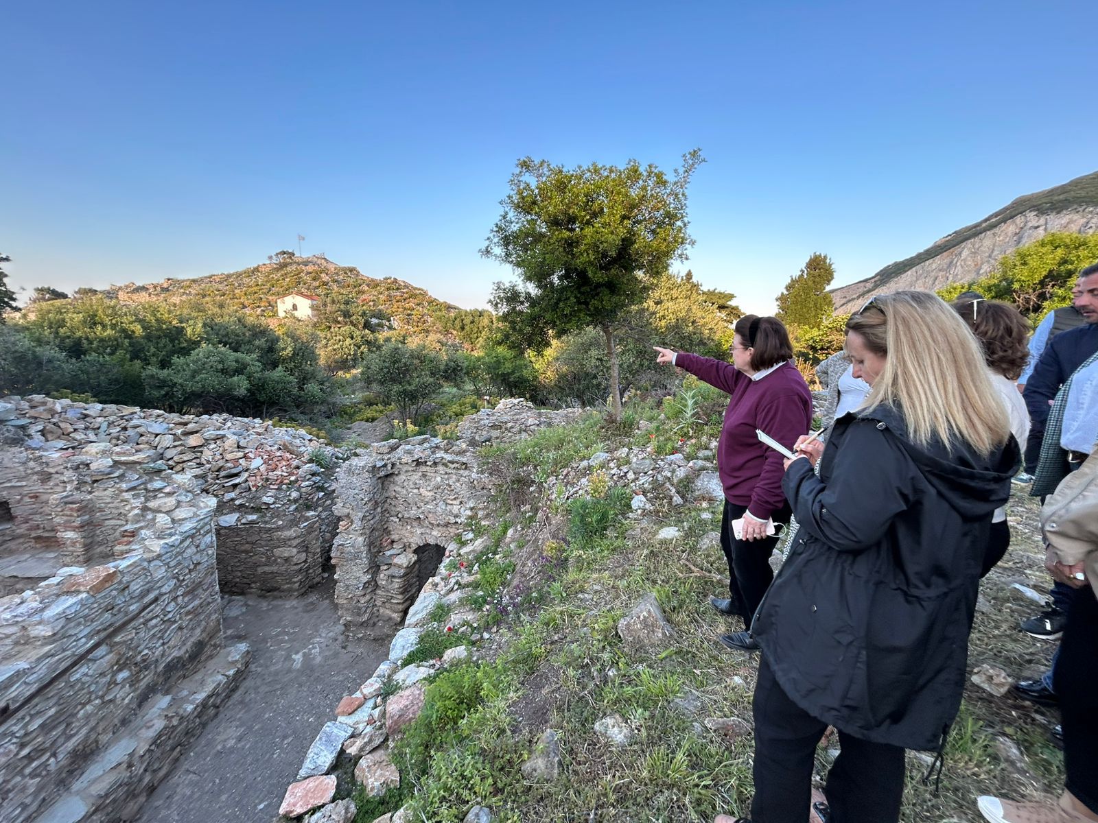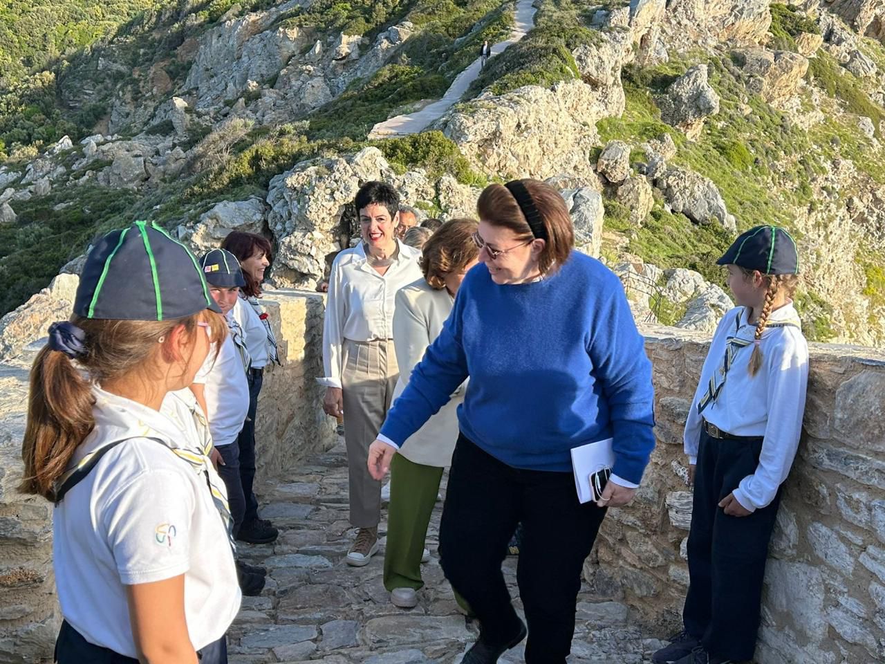 Την Υπουργό Πολιτισμού συνόδευαν, κατά τις αυτοψίες των έργων στο Κάστρο και στις ιερές μονές, ο Δήμαρχος Σκιάθου Θοδωρής Τζούμας, η Γενική Διευθύντρια Αρχαιοτήτων και Πολιτιστικής Κληρονομιάς Ολυμπία Βικάτου, ο προϊστάμενος της Διεύθυνσης Βυζαντινών και Μεταβυζαντινών Μνημείων, Θεμιστοκλής Βλαχούλης, η Τμηματάρχης Έργων της Διεύθυνσης, Ευθυμία Χωραφά, η προϊσταμένη της Εφορείας Αρχαιοτήτων Μαγνησίας Κρυσταλλία Μαντζανά και υπηρεσιακά στελέχη του ΥΠΠΟ.
