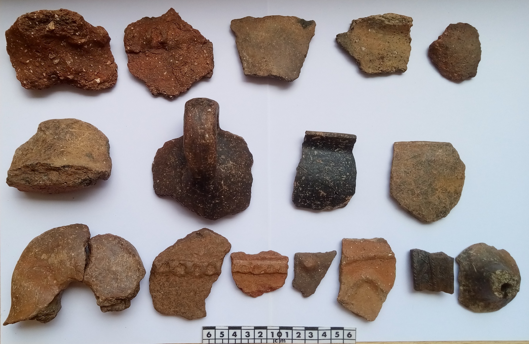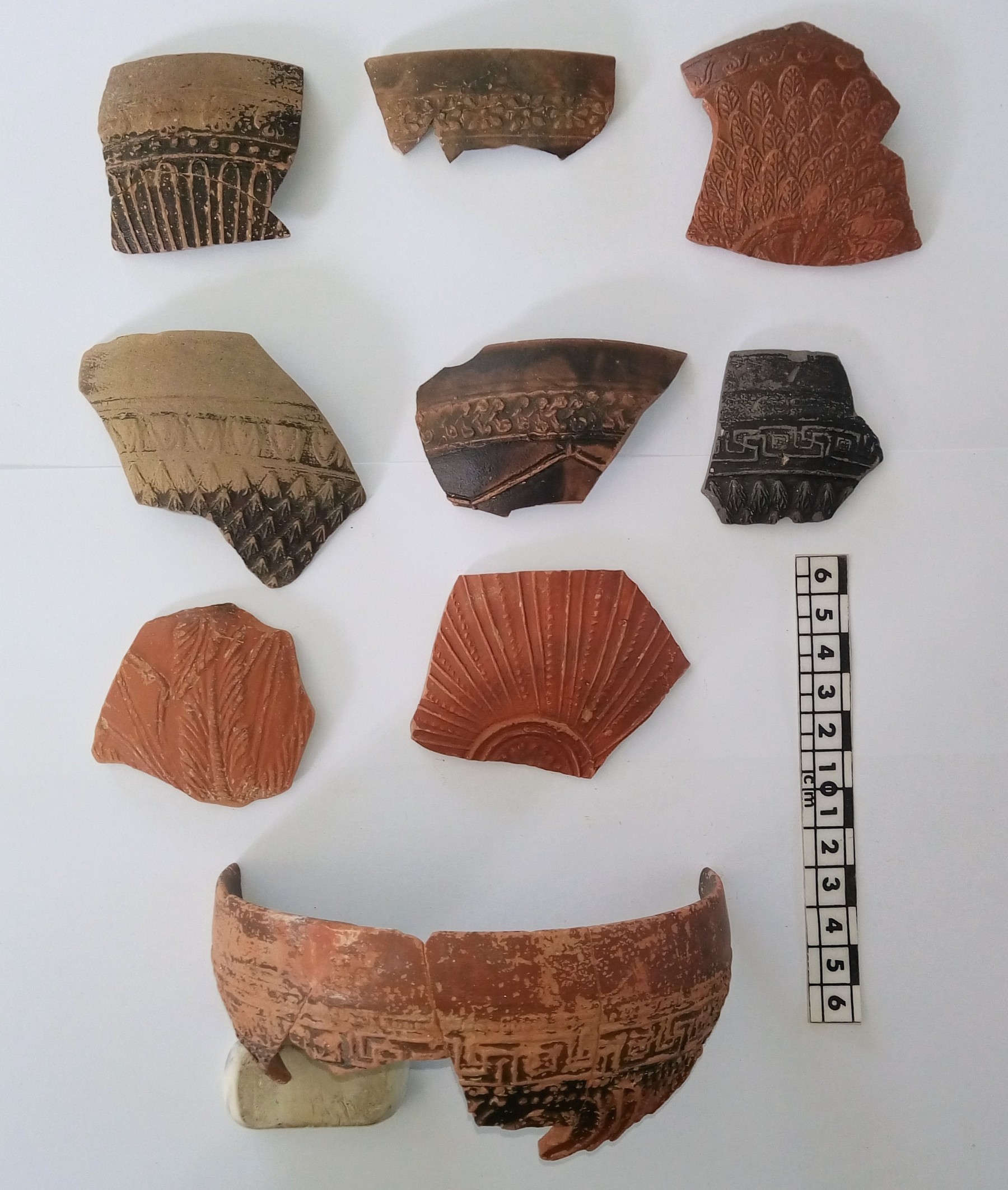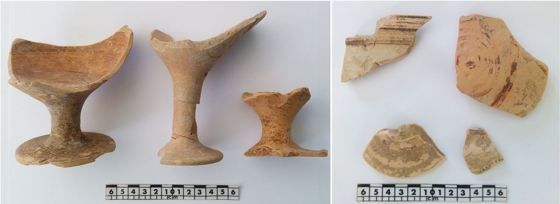 Όσον αφορά στους ιστορικούς χρόνους, ο μέγιστος όγκος του κεραμεικού υλικού ανάγεται στην Ελληνιστική και πρώιμη Ρωμαϊκή περίοδο (έως και τον 1ο/2ο αι. μ.Χ.). Στο σύνολο των οστράκων μεγάλων σκευών, αναγνωρίζονται μέχρι τώρα και 8 θραύσματα περιρραντηρίων που συνηθίζονται σε ιερά.