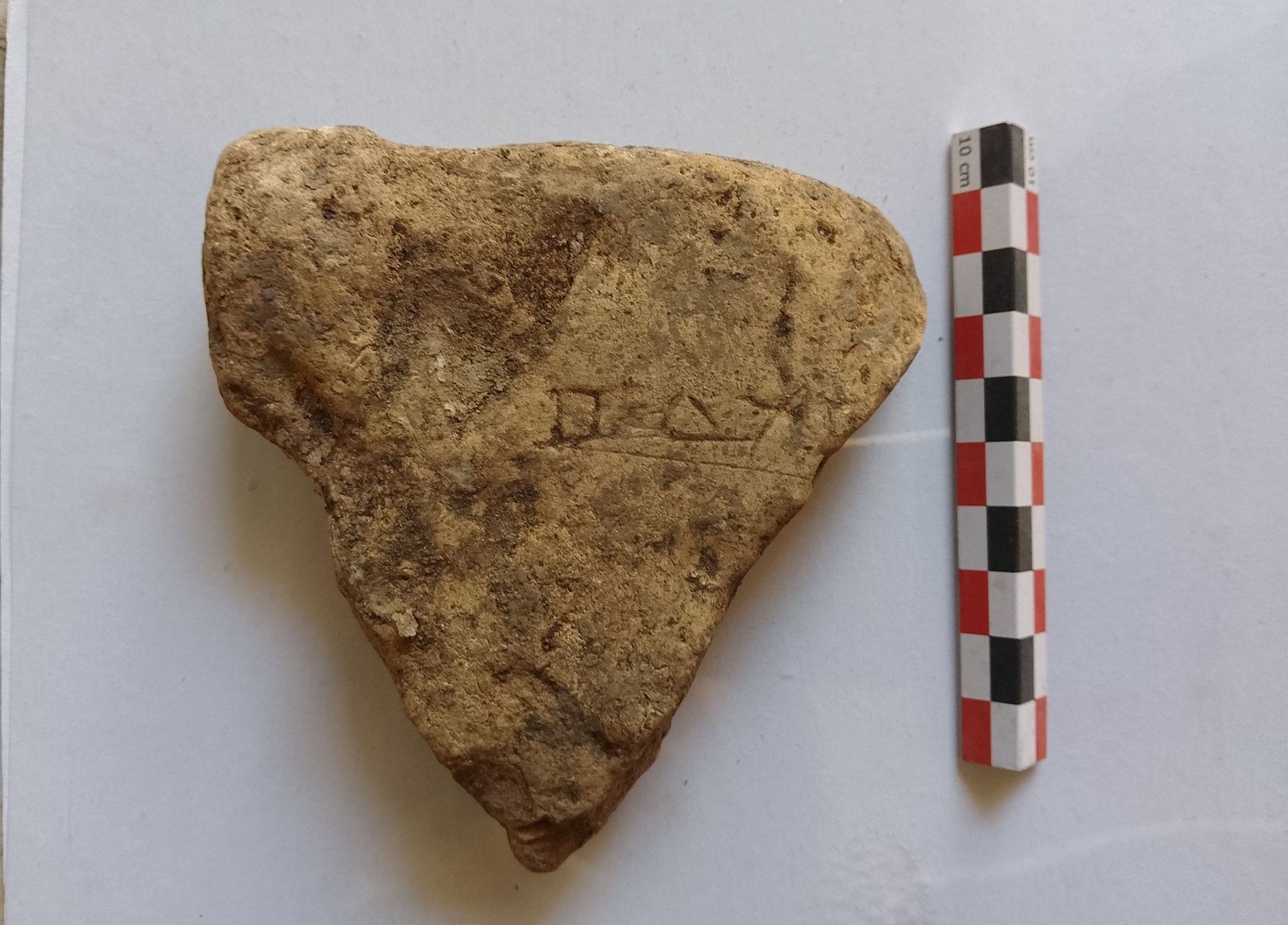 Από την πρόσφατη επεξεργασία του υλικού προέκυψε δείγμα πού σώζει σφράγισμα μείζονος σημασίας, με το όνομα [ΟΔ]ΥCCEOC (στην γενική) προς τα αριστερά. Σε άλλο θραύσμα διακρίνεται εγχάρακτη αφιερωματική επιγραφή, με το όνομά του πιθανότατα στην δοτική, ίσως από προσκυνητή: ΟΔΥC[CEI