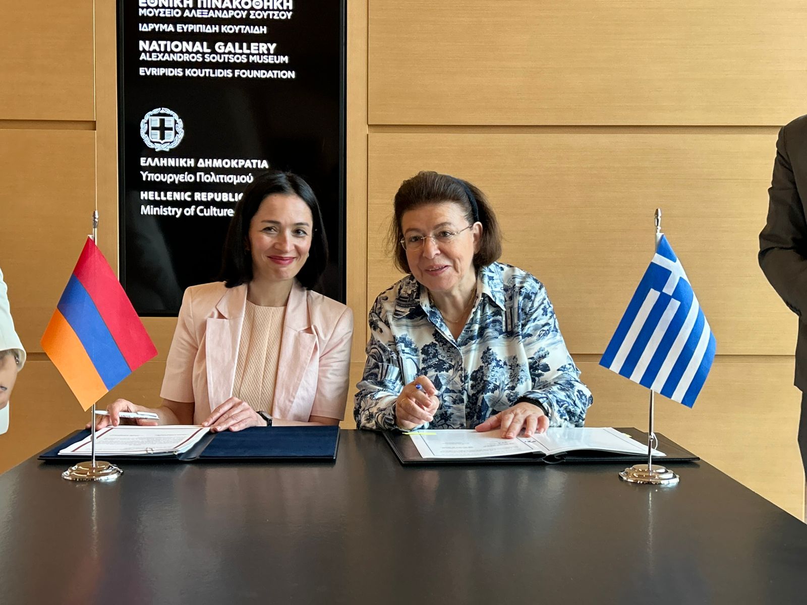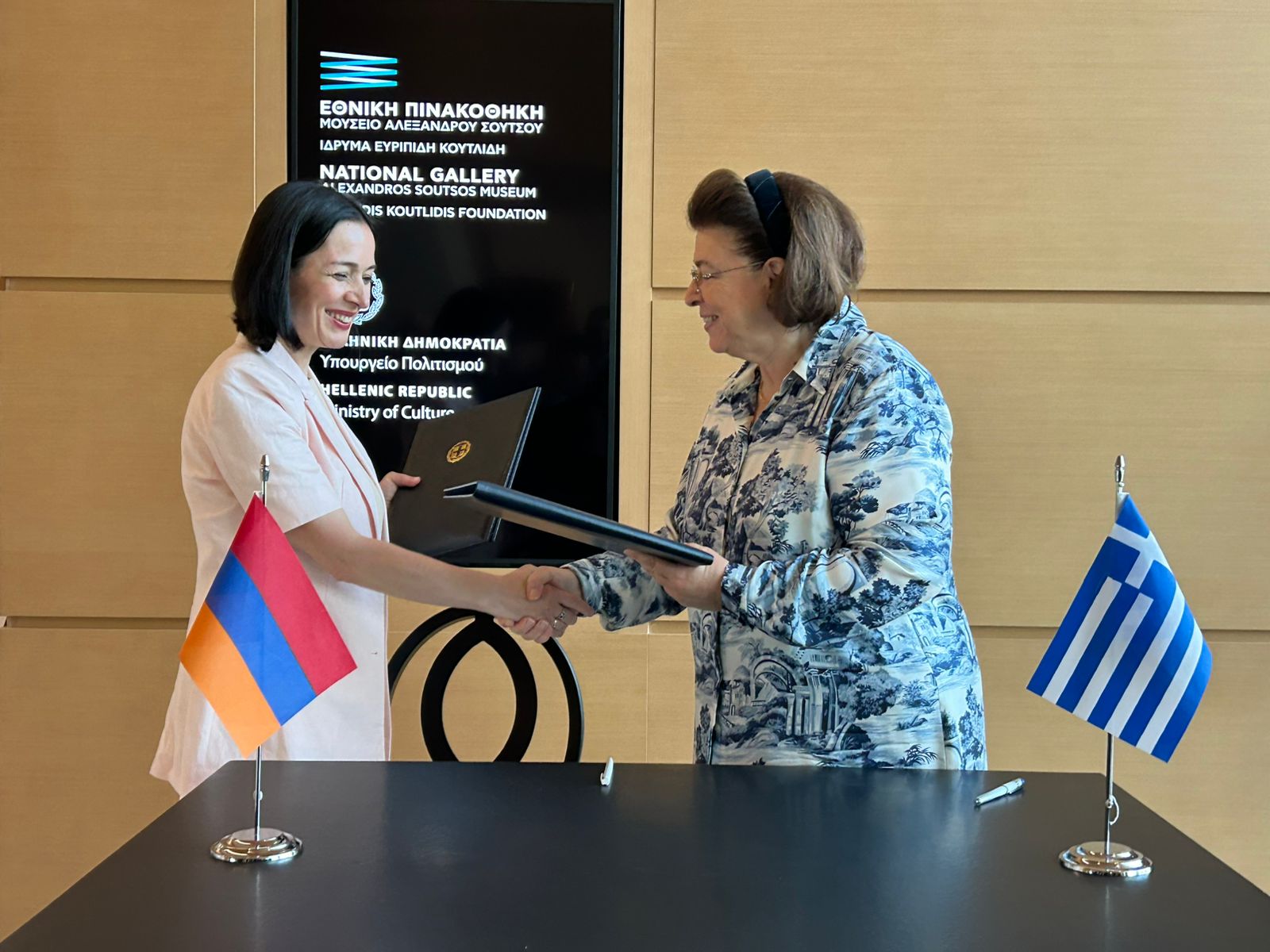 Η Υπουργός Πολιτισμού Λίνα Μενδώνη πραγματοποίησε συνάντηση εργασίας, στην Εθνική Πινακοθήκη - Μουσείο Αλεξάνδρου Σούτσου, με την Υπουργό Παιδείας, Επιστήμης, Πολιτισμού και Αθλητισμού της Αρμενίας Zhanna Andreasyan, στο πλαίσιο της τριήμερης επίσημης επίσκεψής της στην Αθήνα.