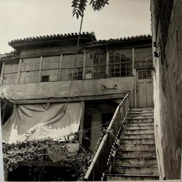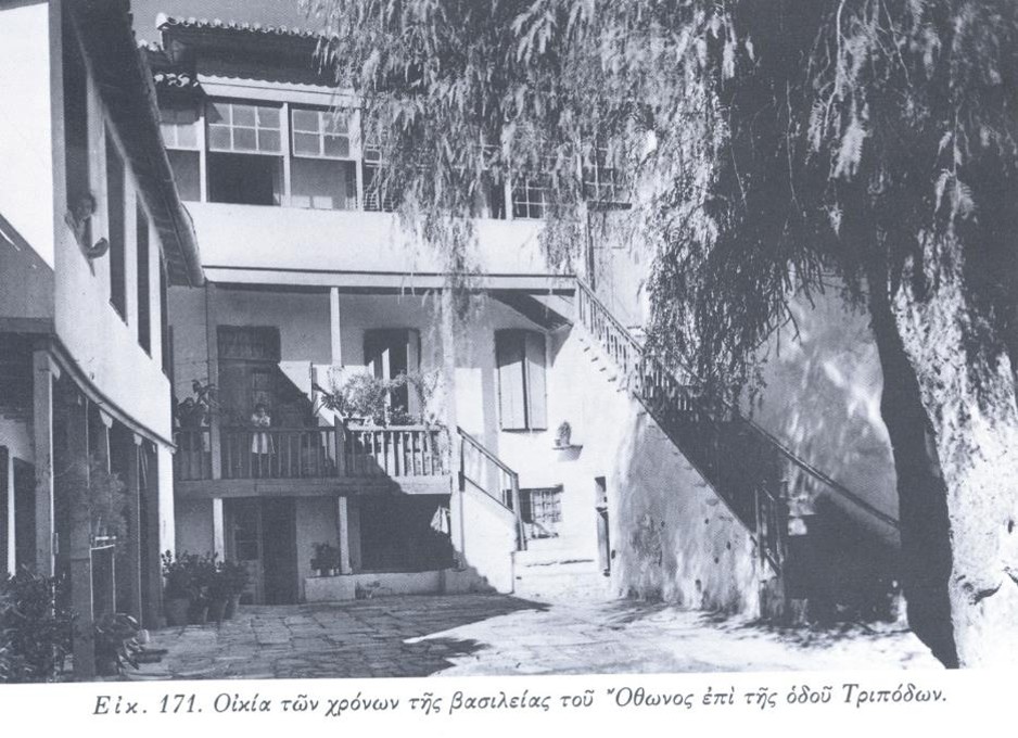 Το κτήριο, συνολικής επιφανείας 266 τ.μ., είναι τριώροφο με ξύλινο συνεχές χαγιάτι, σε όλες τις στάθμες, ανταποκρινόμενο στα πρότυπα της πρώιμης οθωνικής περιόδου. Αποτελεί μέρος συγκροτήματος με άλλοτε συνοδά κτήρια και εσωτερική αυλή, τυπολογία που επικράτησε στα χρόνια της Οθωμανοκρατίας, στην Πλάκα. Η παρουσία του κυρίως κτηρίου μαζί με τα προσκτίσματά του, τεκμηριώνεται την περίοδο 1836-1837. Αποτελεί παλίμψηστο λόγω της παρουσίας σωζόμενων ορατών αρχαιοτήτων, σε στάθμη χαμηλότερη από το δάπεδο του ισογείου, τόσο εντός του κτηρίου στην κατώτερη στάθμη του, όσο και στον άλλοτε αύλειο χώρο. Έχει δεχτεί σειρά επεμβάσεων και τροποποιήσεων λόγω μεταλλαγής του αύλειου χώρου του (καθαιρέσεις συνοδών κτισμάτων και μανδρότοιχου), διενέργειας ανασκαφικής έρευνας σε ολόκληρο σχεδόν τον χώρο και στο εσωτερικό του κτηρίου, και συνολικής επισκευής. Η μορφή του ακινήτου διασώζεται σε τεκμήρια εποχής.