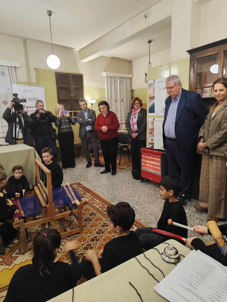 Στη συνέχεια, η Λίνα Μενδώνη επισκέφθηκε τη Δομή Κατάρτισης Υφαντικής, που φιλοξενείται στο Μέκειο Οικοτροφείο Ιωαννίνων, όπου συνομίλησε με εκπαιδευτές και εκπαιδευόμενους, είδε τα έργα τους και ενημερώθηκε για την πορεία των μαθημάτων και των εργαστηρίων. Ξεχωριστή στιγμή ήταν η αναπαράσταση του μύθου της Αράχνης από τους μαθητές της Γ' Δημοτικού του Αρσακείου Σχολείου Ιωαννίνων.