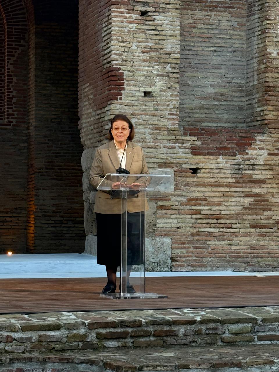 Όλα αυτά δεν θα μπορούσαν να γίνουν, εάν δεν υπήρχε η εξαιρετικά καλή συνεργασία, την οποία έχουμε χρόνια τώρα, με την Περιφέρεια Δυτικής Ελλάδος, με τον Περιφερειάρχη, τον αγαπητό φίλο Νεκτάριο Φαρμάκη, και την προϊσταμένη της οικείας διαχειριστικής αρχής, Ιωάννα Φαναριώτη. Είναι οι στενοί μας συνεργάτες με τους οποίους, όχι απλώς συμπορευόμαστε -γιατί και αυτό είναι σημαντικό, αλλά δεν αρκεί- αλλά και μοιραζόμαστε τις αγωνίες μας, τις ανησυχίες μας, καθώς έχουμε κοινό στόχο την ανάδειξη του μοναδικού πολιτιστικού μας αποθέματος. Όταν υπάρχει αυτή η συνεργασία, κονδύλια τα οποία εξασφαλίζονται, δεν χάνονται. Διότι αν δεν υπάρχει η συμπόρευση, η σύμπνοια και η συνεργασία, τα κονδύλια που εξασφαλίζει το Υπουργείο Πολιτισμού, για συγκεκριμένες δράσεις, χάνονται, επειδή δεν υπάρχει ανταπόκριση. Για το ΥΠΠΟ, για τις υπηρεσίες μας, για όλους εμάς, είναι πάντα μεγάλη χαρά, όταν αποδίδουμε ένα μνημείο, έναν αρχαιολογικό χώρο, και ακόμα μεγαλύτερη όταν το αποκατεστημένο πλέον μνημείο επανέρχεται στην αρχική του χρήση, οπότε σήμερα έχουμε έναν επιπλέον λόγο χαράς. Το Ρωμαϊκό Ωδείο που βρίσκεται στο ιστορικό κέντρο, μέσα στον αστικό ιστό της πόλης, καθιστά την αποκατάσταση και την απόδοσή του στους κατοίκους της Πάτρας, εξαιρετικά σημαντική. Θα ζητήσω από τους φορείς του ΥΠΠΟ, στον τομέα του Σύγχρονου Πολιτισμού, να ετοιμάσουν ένα πρόγραμμα για τα επόμενα τρία χρόνια, με συγκεκριμένες παραστάσεις, οι οποίες θα αρμόζουν στο Ρωμαϊκό Ωδείο της Πάτρας. Ας πω, ένα προοίμιο για τη γέννηση ενός Φεστιβάλ Ωδείου Πατρών.