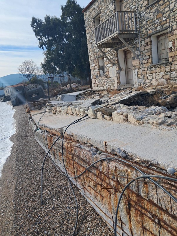 Εξαιτίας του προσανατολισμού της ακτογραμμής, ο κυματισμός στην περίπτωση νοτίων ανέμων, αναπτύσσεται με σημαντικές ταχύτητες και έχουν προκαλέσει εκτεταμένες φθορές μπροστά από το κτήριο του αναψυκτηρίου. Οι επεμβάσεις έχουν στόχο την αντιμετώπιση των παρατηρούμενων διαβρωτικών φαινομένων, την ορθή αναδιαμόρφωση του μετώπου και την αποκατάσταση του προαύλιου χώρου του κτηρίου. Το έργο, προϋπολογισμού 200.000 ευρώ, χρηματοδοτείται από το Εθνικό Πρόγραμμα Ανάπτυξης του Υπουργείου Πολιτισμού.