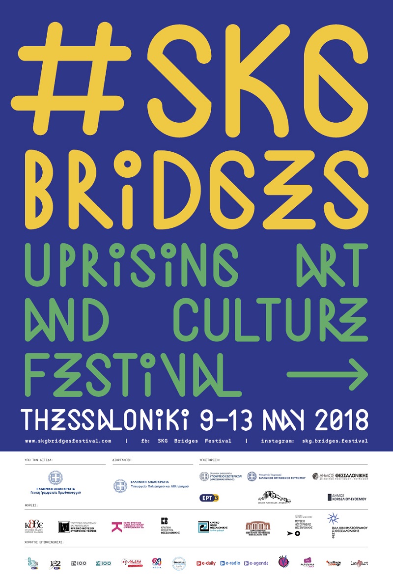 Το μεγαλύτερο φεστιβάλ πολιτισμού για νέους έρχεται στη Θεσσαλονίκη με άρωμα… ευρωπαϊκού Νότου! Μουσική, σινεμά, θέατρο, χορός, φωτογραφία και performance δίνουν ραντεβού στο #SKG Bridges Uprising Arts & Culture Festival, που διοργανώνεται με πρωτοβουλία του Γραφείου Κοινωνικών Πολιτικών της Γενικής Γραμματείας Πρωθυπουργού, σε συνεργασία με το Υπουργείο Πολιτισμού και Αθλητισμού, από τις 9 έως τις 13 Μαΐου 2018.