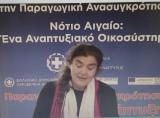 Είμαι χαρούμενη που βρίσκομαι εδώ γιατί αυτή περιοχή έχει δώσει μεγάλο κομμάτι της ταυτότητας του ελληνικού πολιτισμού. Τα νησιά του Αιγαίου αποτελούν ένα κομβικό σημείο για τη στρατηγική του Υπουργείου Πολιτισμού. Τα νησιά αυτά αποτέλεσαν κοιτίδα πολιτισμού και ταυτόχρονα μια μόνιμη γέφυρα μέσα στ...