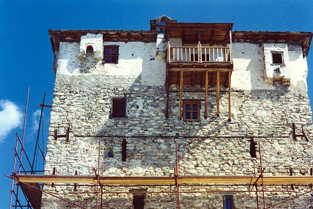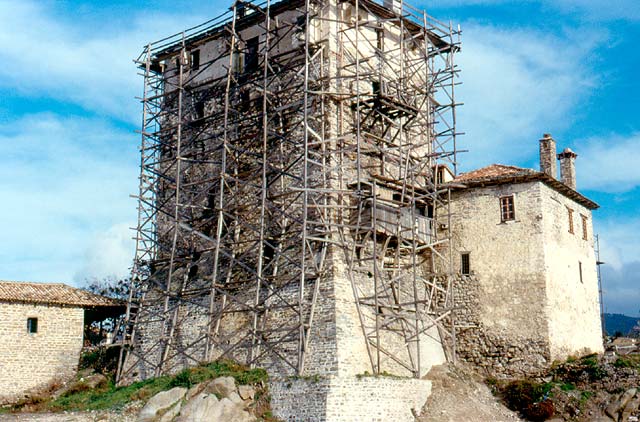 Στη συνέχεια πραγματοποιήθηκε η επισκευή της ξύλινης στέγης στα πλαίσια ενός προγράμματος εργασιών που υλοποιήθηκε σταδιακά και περιέλαβε την αποκατάσταση του ξύλινου φέροντα οργανισμού στο εσωτερικό του πύργου, αρμολογήματα στις εσωτερικές και εξωτερικές επιφάνειες των τοίχων του και αντικατάσταση της περίδεσης του 1975 με ράβδους από ανοξείδωτο χάλυβα.