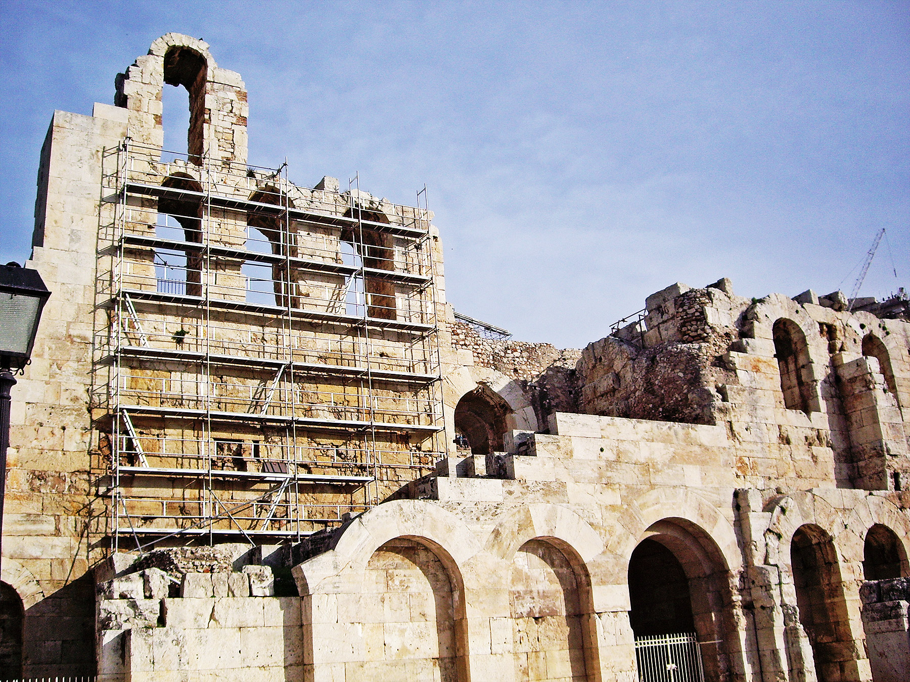 Το Ωδείο του Ηρώδου του Αττικού οικοδομήθηκε τον 2ο αι. μ.Χ. με τη χορηγία του Αθηναίου ρήτορα και σοφιστή Ηρώδη του Αττικού. Το κοίλο, ημικυκλικής κάτοψης, είναι κατασκευασμένο από πεντελικό μάρμαρο, ενώ οι εξωτερικοί του τοίχοι από πειραϊκό ακτίτη. Το έργο στερέωσης και αποκατάστασης του μνημείου εντάχθηκε τον Σεπτέμβριο του 2011 στο Επιχειρησιακό Πρόγραμμα "Αττική" του ΕΣΠΑ 2007-2013 με ημερομηνία ολοκλήρωσης την 30/11/2015. Στο πλαίσιο του έργου αυτού έχει συνταχθεί και εγκριθεί σειρά μελετών, βάσει των οποίων εκτελούνται οι εργασίες συντήρησης και αναστήλωσης.
