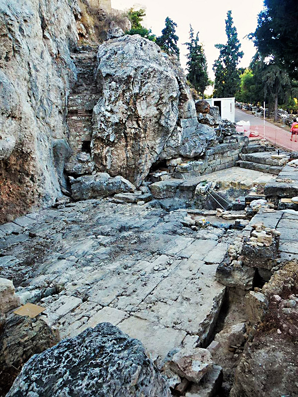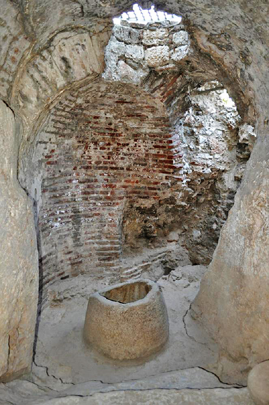 Σε ό,τι αφορά στη θολωτή κατασκευή πάνω από την πηγή, η οποία εδράζεται σε ένα σύνολο καταπεσμένων βραχωδών όγκων, υπάρχουν έντονες ρηγματώσεις, χαρακτηριστικές μετακινήσεων και μόνιμων παραμορφώσεων στην τοιχοποιία. Σοβαρές βλάβες εμφανίζονται επίσης με τη μορφή βυθίσεων στην κύρια θόλο, και καταπτώσεων τμημάτων οι οποίες δηλώνουν τοπική ανεπάρκεια του φέροντος οργανισμού πιθανόν από γήρανση υλικών, ύπαρξη υγρασίας και εισροή των ομβρίων.