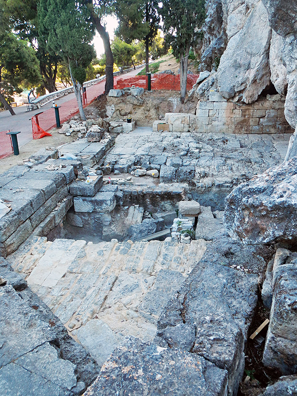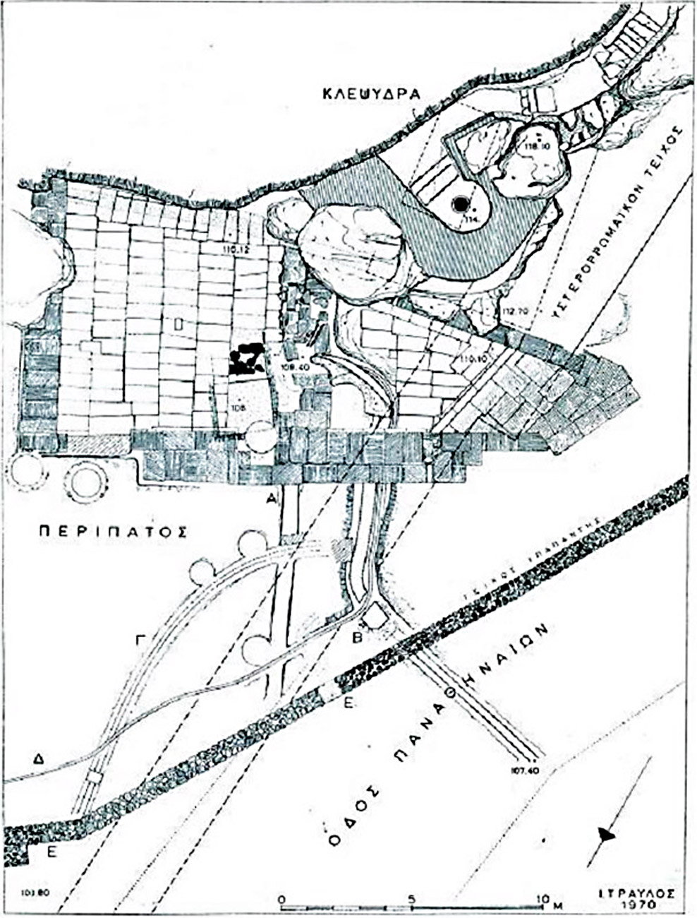 Η πηγή της Κλεψύδρας βρίσκεται στο βορειοδυτικό πρανές του βράχου της Ακρόπολης. Η μακραίωνη ιστορία της αρχίζει από τους προϊστορικούς χρόνους. Το πρώτο κρηναίο οικοδόμημα και η πλακόστρωτη αυλή διαμορφώθηκαν γύρω στο 470-460 π.Χ. Ύστερα από κατακρημνίσεις βράχων κατά τον 1ο αι π.Χ. και 1ο αι. μ.Χ., το μνημείο υπέστη σημαντικές μεταβολές. Κατά την υστερορωμαϊκή περίοδο (τέλος 2ου αι. μ.Χ., ή β’ μισό του 3ου αι μ.Χ.), ύστερα από την κατακρήμνιση της στέγης της πηγής και το φράξιμο της εισόδου της, ανοίχτηκε πηγάδι πάνω από την κλασική δεξαμενή του νερού της πηγής, για την προστασία του οποίου διαμορφώθηκε μία θολωτή κατασκευή από οπτοπλίνθους, η οποία συνδέθηκε με την Ακρόπολη μέσω μιας λαξευμένης στο βράχο, θολοσκεπούς κλίμακας.