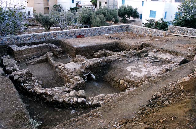 Στις θεμελιώσεις των παλαιοχριστιανικών τοίχων εντοπίστηκαν σκόρπια ελληνιστικά όστρακα αγγείων που πιστοποιούν την παλαιοχριστιανική κατοίκηση της περιοχής.