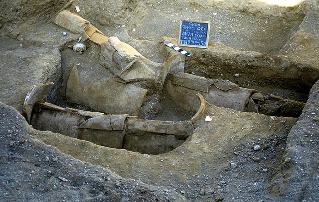 Εμφανίζουν μεγάλη πυκνότητα, και συχνά επικαλύπτουν η μία την άλλη. Ορισμένες διασώζουν το περιχείλωμά τους σε αρκετό ύψος, ενώ πάνω και δίπλα σε κάποιες εντοπίστηκαν και φέτος μαγειρικά και αποθηκευτικά σκεύη.