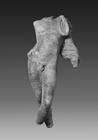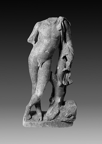 4. Το άγαλμα απεικονίζει ακέφαλο όρθιο γυμνό νέο που φέρει χλαμύδα στους ώμους, στον τύπο του Ερμή ή του Γανυμήδη. Η χλαμύδα πορπώνεται στον δεξιό ώμο, καλύπτει την πλάτη και τυλίγεται γύρω από το αριστερό χέρι. Η μορφή στηριζόταν στο δεξί πόδι με το αριστερό χαλαρό. Στην πλήρη του μορφή, το άγαλμα στηριζόταν στην αριστερή πλευρά σε κορμό δένδρου, πάνω στον οποίο έπεφτε η χλαμύδα και ο οποίος εξασφάλιζε τη στήριξη του αγάλματος.