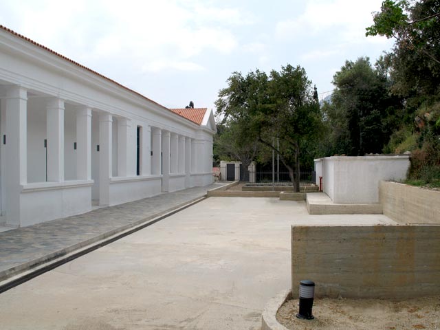 Το διαμορφωμένο έδαφος του περιβάλλοντος χώρου μπροστά από τη νότια όψη (όψη της κυρίας εισόδου) και από την ανατολική και από τη δυτική όψη βρίσκεται σε στάθμη περίπου 3,20 μ. κάτω από τη στάθμη του ισογείου.