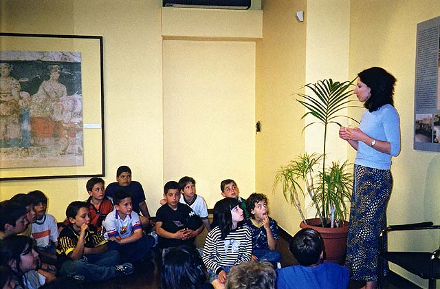 Δύο εκπαιδεύτριες αναλαμβάνουν να ξεναγήσουν τους μαθητές, χρησιμοποιώντας ως εποπτικό υλικό τα ίδια τα εκθέματα, αναπαραστάσεις αντικειμένων και φωτογραφίες. Έντυπα με ερωτήματα σχετικά με τα εκθέματα βοηθούν τους μαθητές να κατανοήσουν καλύτερα ό,τι είδαν κατά τη διάρκεια της ξενάγησης. Στη συνέχεια τα παιδιά ασχολούνται με ποικίλες δραστηριότητες, όπως ζωγραφική, κατασκευές, κουκλοθέατρο και με ομαδικά παιχνίδια (μίμησης - αναπαράστασης ή επιτραπέζια).