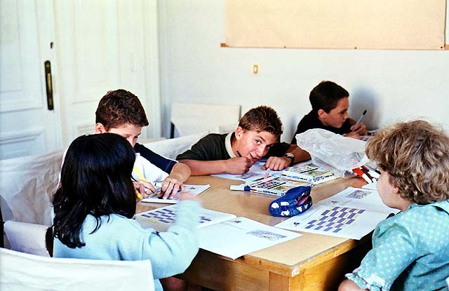 Μία εκπαιδεύτρια διηγείται στους μαθητές το ιστορικό παραμύθι του εντύπου, που έχει εκδοθεί για τις ανάγκες του προγράμματος, παραλληλίζοντας την αρχαία εποχή με τη σύχγρονη. Στη συνέχεια τα παιδιά ασχολούνται με τις ασκήσεις του εντύπου (σωστό ή λάθος, αντιστοιχίες λέξεων, κ.λπ.), με ποικίλλες εικαστικές εκδηλώσεις, όπως ζωγραφική και κατασκευές, και με παιχνίδια στα οποία έχουν ενεργό συμμετοχή. Τα κείμενα του εντύπου οφείλονται στην κ. Λ. Αχειλαρά και η εικονογράφησή του στην κ. Δ. Βάρρου.