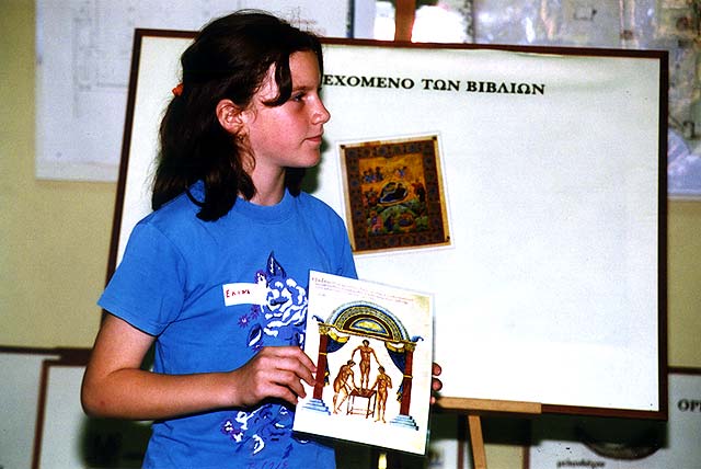 Με τη μέθοδο των ερωταποκρίσεων, τη διαλεκτική μέθοδο και γενικότερα τη συζήτηση κεντρίζεται το ενδιαφέρον των μαθητών, ανακτώνται παλιές και αποκτώνται καινούργιες γνώσεις για το συγκεκριμένο θέμα. Έπειτα η συμμετοχή σε ομαδικά δημιουργικά εργαστήρια με στόχο τη δημιουργία ενός "βυζαντινού χειρογράφου" με την τεχνική των βυζαντινών κάνει δυνατή την ανάπτυξη γνωστικών και καλλιτεχνικών δεξιοτήτων, καλλιεργεί τη φαντασία και τη δημιουργικότητα, βοηθά στην κοινωνικοποίηση των μαθητών και επιτρέπει την έκφραση της προσωπικής τους γνώμης.
