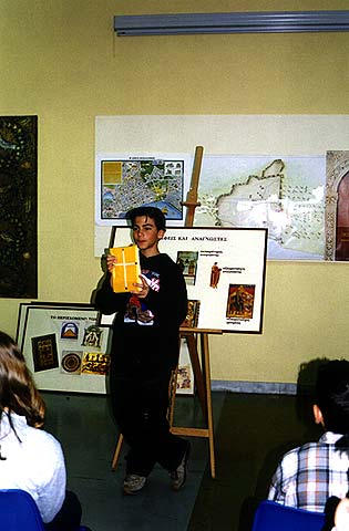 Πραγματεύεται θέματα όπως η γραφή, το βιβλίο, οι δημιουργοί και οι αποδέκτες του στη βυζαντινή κοινωνία, μέσω της συζήτησης, της παρουσίασης πλούσιου εποπτικού υλικού και της συμμετοχής των μαθητών σε δημιουργικά εργαστήρια.