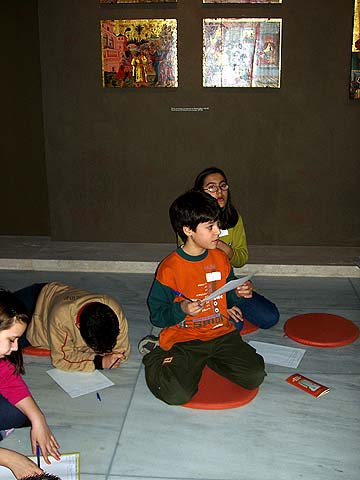 Στο Μουσείο τα παιδιά οδηγούνται στην αίθουσα όπου εκτίθεται ο πίνακας του Θ. Πουλάκη και εκεί συναντούν μια αρχαιολόγο με σκοπό να συγκεντρώσουν περισσότερες πληροφορίες για την εργασία τους. Με τον τρόπο αυτό γίνεται σύνδεση με τις δραστηριότητες στο σχολείο, ανάληψη των υπαρχουσών γνώσεων και απόκτηση καινούργιων.
