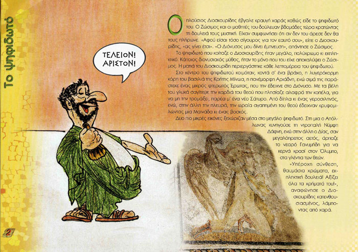 Πρόκειται για έντυπο φυλλάδιο εργασίας το οποίο καλούνται να αναγνώσουν και να συμπληρώσουν οι μαθητές κατά τη διάρκεια εφαμογής του εκπαιδευτικού προγράμματος ''Ένα ψηφιδωτό ... και ένα παραμύθι''.