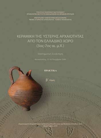 «Κεραμική της Ύστερης Αρχαιότητας από τον ελλαδικό χώρο (3ος-7ος αι. μ.Χ.)», Πρακτικά Επιστημονικής Συνάντησης, Θεσσαλονίκη 12-16 Νοεμβρίου 2006, Tόμ. I-II, Θεσσαλονίκη 2010 Δημοσιεύματα του Αρχαιολογικού Ινστιτούτου Μακεδονικών και Θρακικών Σπουδών αρ. 8
