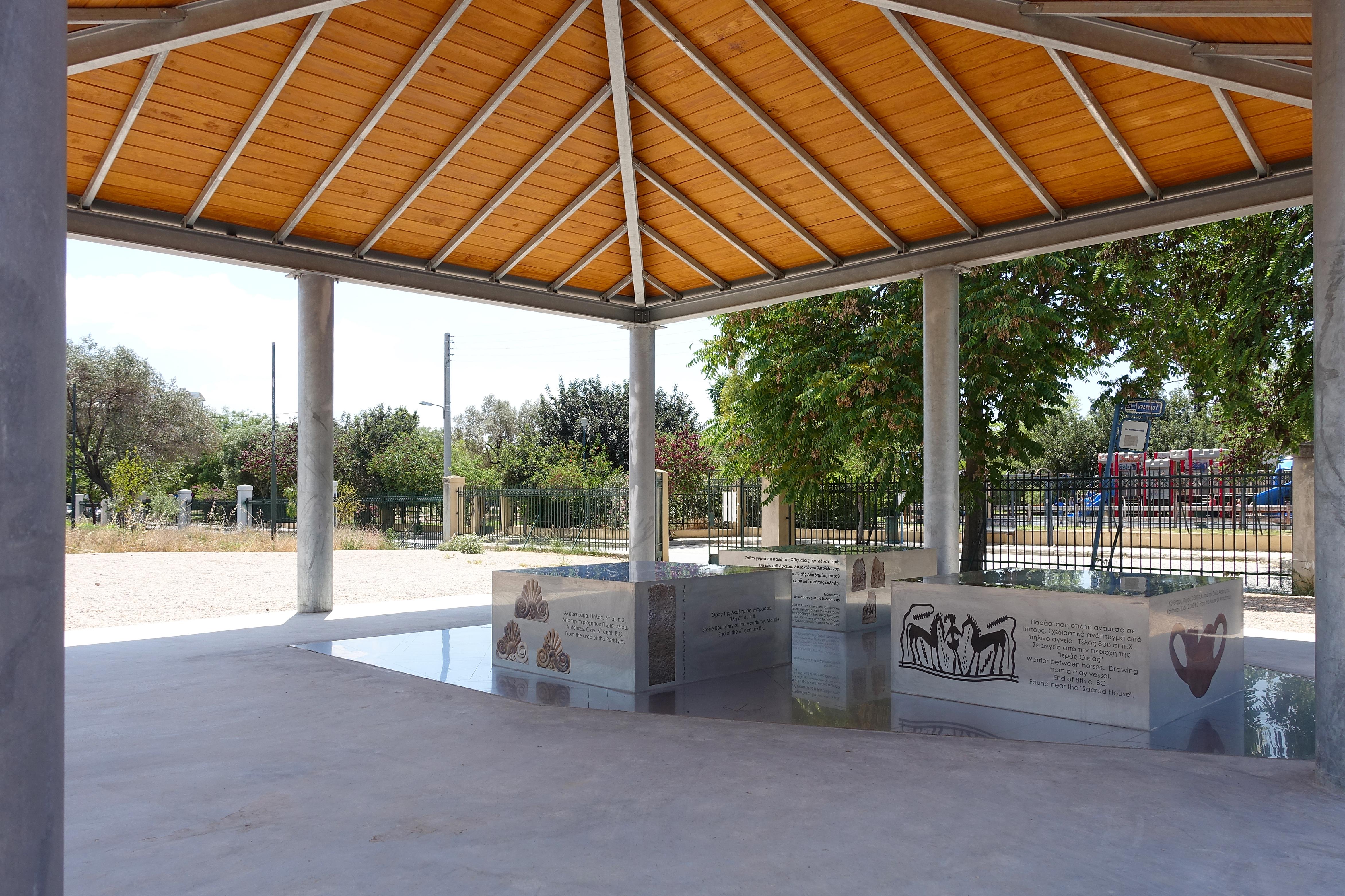 - Υλοποιήθηκε σειρά επεμβάσεων στην περιοχή των μνημείων της γεωμετρικής «Ιεράς Οικίας» και της «Οικίας του Ακαδήμου» της πρώϊμης Εποχής του Χαλκού, τα οποία είχαν καταπονηθεί από τη μακροχρόνια έκθεση στις καιρικές συνθήκες και δεν ήταν προσβάσιμα στον επισκέπτη. Προκειμένου να επιλυθεί το πρόβλημα της συσσώρευσης υδάτων στον περιβάλλοντα χώρο των μνημείων εφαρμόστηκε μελέτη αποστράγγισης ομβρίων που εκπονήθηκε στο πλαίσιο του έργου. Η "Ιερά Οικία" καταχώθηκε, προκειμένου να περισωθούν οι πλίνθινοι τοίχοι του κτηρίου, οι οποίοι είχαν υποστεί ανεπανόρθωτες φθορές εξαιτίας κατααστροφικής πλημμύρας, το 1961. Στην τελική επιφάνεια αποδόθηκε η κάτοψη του μνημείου με νεώτερα υλικά, ώστε να είναι αναγνώσιμο από τον επισκέπτη. Το παλαιό στέγαστρο προστασίας των δύο μνημείων αντικαταστάθηκε από νέο, το οποίο προστατεύει την "Οικία του Ακαδήμου".