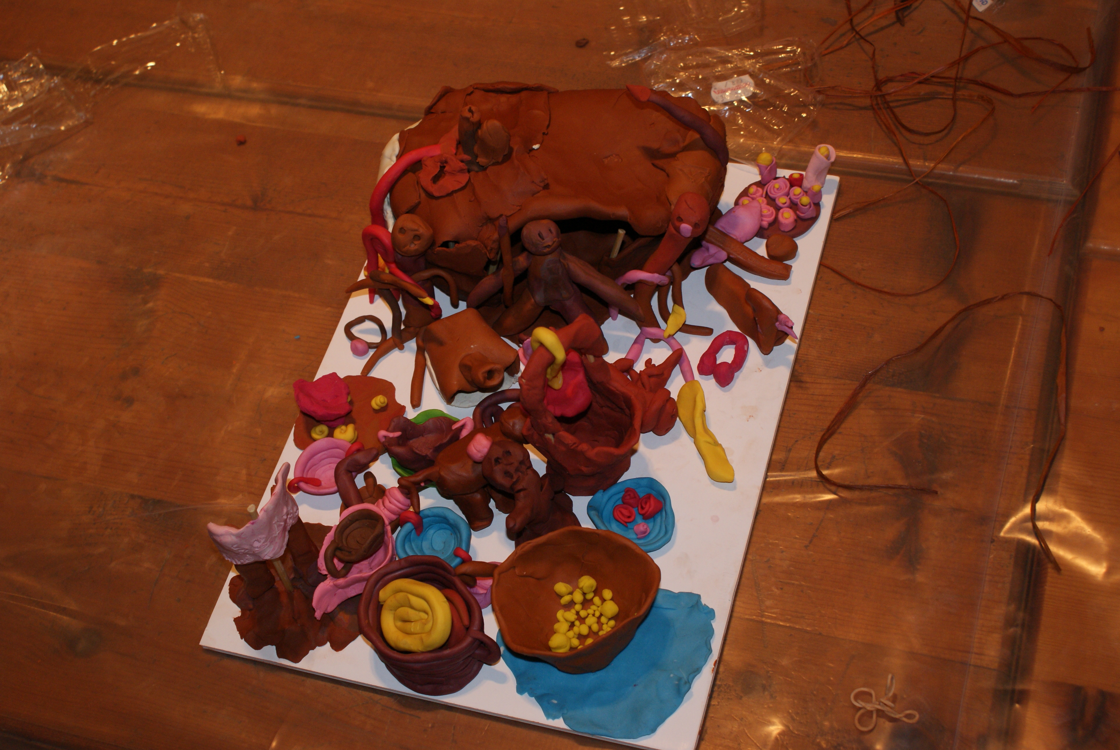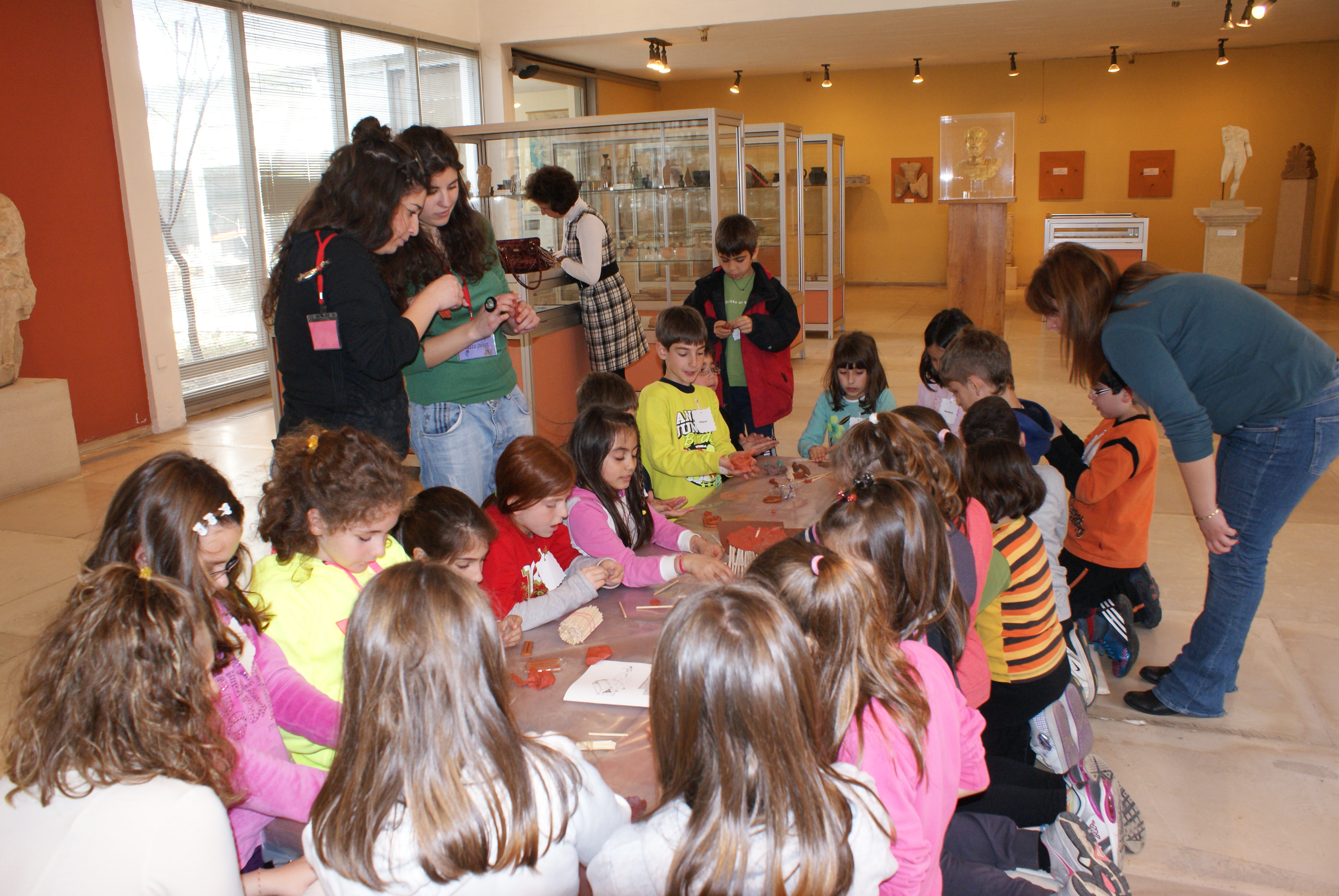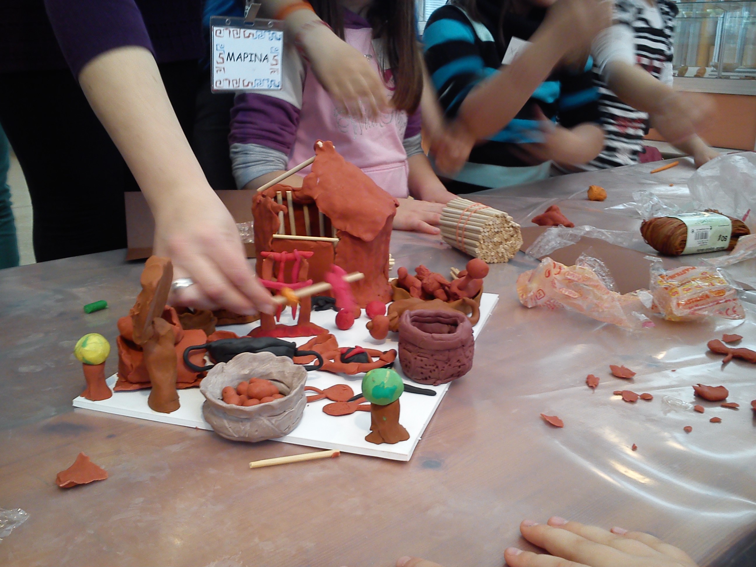 Οι μαθητές δημιουργούν με πλαστελίνη το δικό τους νεολιθικόσπίτι σε ειδικά διαμορφωμένο χώρο του μουσείου.