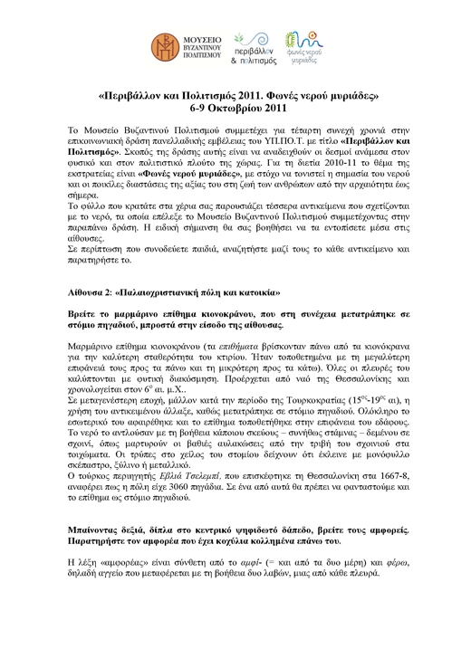 "Περιβάλλον και πολιτισμός 2011. Φωνές νερού μυριάδες"