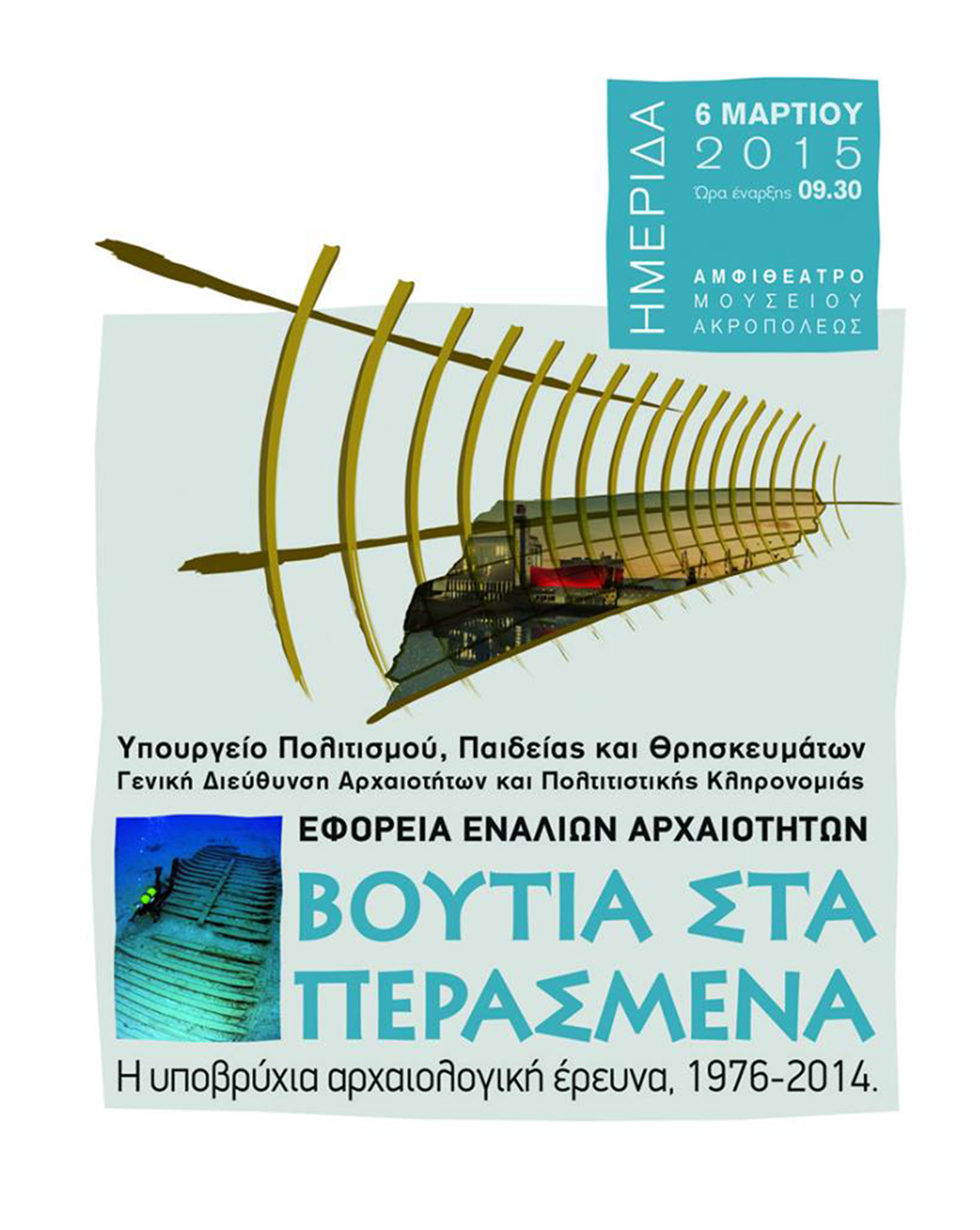 «Βουτιά στα περασμένα: Η υποβρύχια αρχαιολογική έρευνα, 1976-2014» είναι το θέμα της ημερίδας που διοργάνωσε η Εφορεία Εναλίων Αρχαιοτήτων της Γενικής Διεύθυνσης Αρχαιοτήτων και Πολιτιστικής Κληρονομιάς του ΥΠΠΟΑ, στις 6 Μαρτίου στο αμφιθέατρο του Μουσείου Ακροπόλεως.