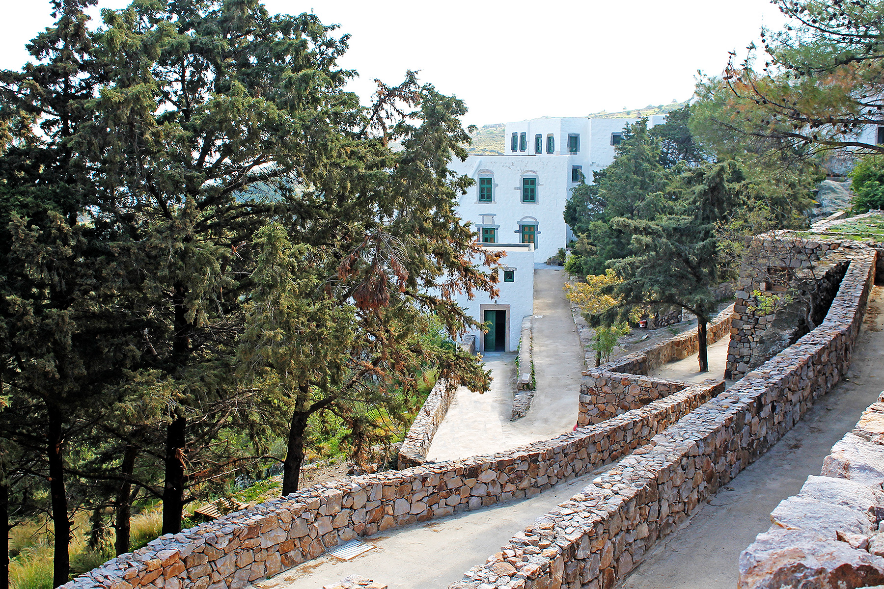 Το έργο της αποκατάστασης του κτηριακού συγκροτήματος της Ιεράς Αποκάλυψης περιλήφθηκε αρχικά στο Β' Κοινοτικό Πλαίσιο Στήριξης (1999-2001), με σκοπό τη συντήρηση και ανάδειξη τμήματος του μνημείου, ενώ τον Δεκέμβριο του 2010 εντάχθηκε στο Εθνικό Στρατηγικό Πλαίσιο Αναφοράς (Επιχειρησιακό Πρόγραμμα Κρήτης και Νήσων Αιγαίου). Οι εργασίες ξεκίνησαν τον Ιούλιο του 2011, στοχεύοντας στην πλήρη δομική και κτηριολογική αποκατάσταση του συγκροτήματος, με την παράλληλη αναβάθμιση και την ανάδειξή του ως ενός σύγχρονου μοναστηριακού πνευματικού κέντρου. Κατά τη διάρκεια των εργασιών, καταγράφηκαν και αποτυπώθηκαν όλα τα νέα αρχιτεκτονικά στοιχεία, ενώ για την αρτιότερη εκτέλεση του έργου συντάχθηκαν εξειδικευμένες μελέτες τοπογραφικής αποτύπωσης του χώρου, ηλεκτρομηχανολογικών εγκαταστάσεων για το σύνολο του κτηριακού συγκροτήματος και ειδική στατική μελέτη για την επίλυση επιμέρους προβλημάτων που προέκυψαν κατά την πορεία του.