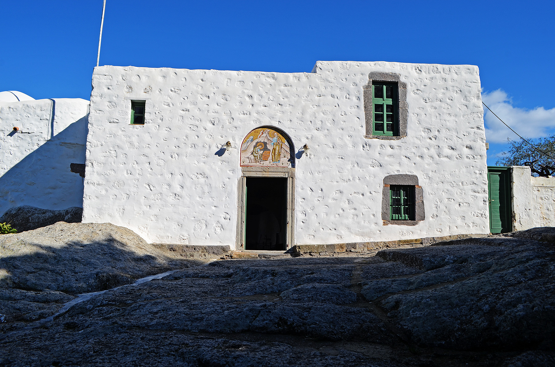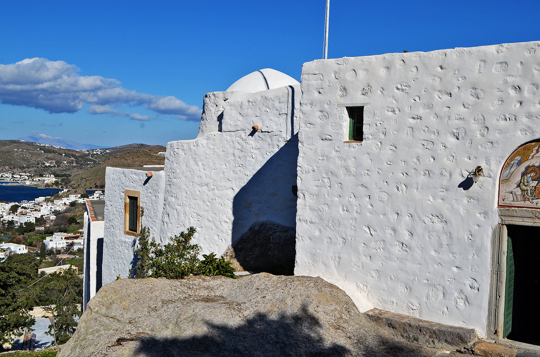 To κτηριακό συγκρότημα του Ιερού Σπηλαίου της Αποκάλυψης, αντιπροσωπευτικό παράδειγμα προσθετικής αρχιτεκτονικής, αναπτύσσεται σε πέντε στάθμες, που περιλαμβάνουν τέσσερα κτηριακά σύνολα, με αλλεπάλληλες οικοδομικές φάσεις, από τον 12ο έως και τον 20ό αιώνα. Έως σήμερα λειτουργεί ως Κάθισμα της Ιεράς Μονής Αγίου Ιωάννου Θεολόγου στη Χώρα Πάτμου και αποτελεί έναν από τους σημαντικότερους προσκυνηματικούς, ιερούς χώρους του χριστιανισμού. Το έργο της αποκατάστασής του περιλήφθηκε αρχικά στο Β' Κοινοτικό Πλαίσιο Στήριξης (1999-2001), με τίτλο «Αποκατάσταση της Ιεράς Μονής Αποκάλυψης Πάτμου», έχοντας ως στόχο τη συντήρηση και ανάδειξη τμήματος του μνημείου. Οι εργασίες κτηριακής αποκατάστασης εστιάσθηκαν στο κτήριο Γ (επίπεδα 1 και 2), που παρουσίαζε τις σημαντικότερες φθορές, ενώ δημιουργήθηκαν νέοι χώροι υγιεινής των επισκεπτών στον άμεσο εξωτερικό περίβολο. Κατά τη διάρκεια του παραπάνω έργου εκτελέστηκαν μεν αρκετές εργασίες συντήρησης και επισκευής του συγκροτήματος, όμως η αναγκαιότητα της πλήρους αποκατάστασής του παρέμεινε ως βασικό ζητούμενο, μιας και το έργο δεν είχε την τύχη να ενταχθεί ως συνεχιζόμενο στο Γ΄ Κοινοτικό Πλαίσιο Στήριξης. Με την παρέλευση των επόμενων ετών, το μεγαλύτερο μέρος του συγκροτήματος έχρηζε πλέον πλήρους αποκατάστασης, τα αποκατεστημένα τμήματα έπρεπε να συντηρηθούν εκ νέου, ενώ η ανάγκη εκπλήρωσης λειτουργικών αναγκών του δεν είχε ικανοποιηθεί. Επιπροσθέτως, οι εργασίες διαμόρφωσης νέας εισόδου στον προσκυνηματικό τόπο του Σπηλαίου, ώστε να καταστεί προσβάσιμος στα ΑμεΑ, αν και είχαν ξεκινήσει, παρέμεναν ημιτελείς. Η ένταξη του έργου στο Επιχειρησιακό Πρόγραμμα Κρήτης και Νοτίου Αιγαίου πρόσφερε την ευκαιρία να ολοκληρωθεί η αποκατάσταση του εμβληματικού προσκυνηματικού κέντρου, που υποδέχεται ετησίως χιλιάδες πιστών.