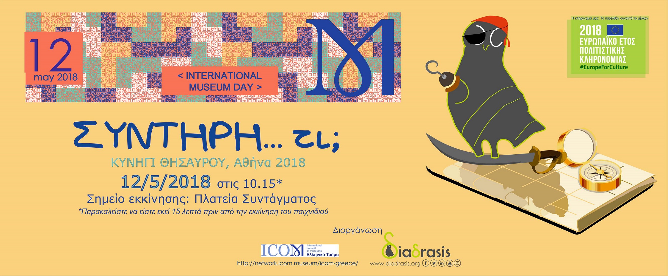 Η αστική μη κερδοσκοπική εταιρεία Diadrasis και η Επιτροπή Συντήρησης του Ελληνικού Τμήματος ICOM διοργανώνουν δράση με τίτλο «Συντηρη… τι;» στις 12 Μαΐου στην Αθήνα, η οποία απευθύνεται στο ευρύ κοινό με τη μορφή παιχνιδιού πόλης («κυνήγι θησαυρού») και η οποία εντάσσεται στις εκδηλώσεις για τη Διεθνή Ημέρα Μουσείων. Οι συμμετέχοντες θα ανακαλύψουν σε ανοιχτά μνημεία της Αθήνας, με τη βοήθεια επαγγελματιών συντηρητών αρχαιοτήτων και έργων τέχνης, τις φθορές, τις επεμβάσεις συντήρησης και τους τρόπους προστασίας της πολιτιστικής κληρονομιάς.