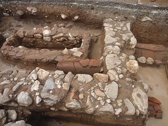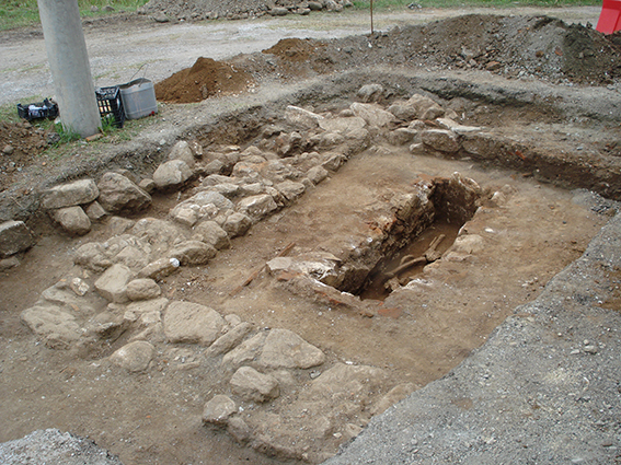 Η ανασκαφική έρευνα διενεργήθηκε τον Ιούνιο και έως τα μέσα περίπου Ιουλίου χωρίς να ολοκληρωθεί, λόγω της διακοπής εργασιών του αναδόχου του έργου[6]. Ξεκίνησε στην ανώνυμη οδό που βρίσκεται το εκκλησάκι των Αγίων Θεοδώρων, και σε απόσταση μερικών μόνο μέτρων από το οστεοφυλάκιο των παλαιοχριστιανικών χρόνων. Ερευνήθηκε μήκος εφτά μέτρων του αγωγού σε βάθος περίπου 1,5 μ. από την επιφάνεια του οδοστρώματος και ήρθαν στο φως οκτώ τάφοι, εκ των οποίων οι δύο ήταν κτιστοί κιβωτιόσχημοι με κάλυψη μεγάλων πελεκημένων μαρμαρόλιθων (Εικ. 1), ο ένας λακκοειδής με ίδιου τύπου κάλυψη και οι υπόλοιποι πέντε κεραμοσκεπείς-παιδικοί (Εικ. 2). Από τους τελευταίους οι τέσσερις ανήκουν στον τύπο του καλυβίτη. Όλοι ήταν προσανατολισμένοι στον άξονα Ανατολής-Δύσης, και μόνο δύο παρουσίαζαν μικρή απόκλιση προς τα βόρεια. Οι τάφοι έχουν διαταράξει στρώμα καταστροφής από κεραμίδια στέγης των ύστερων ελληνιστικών χρόνων με μεγάλη συγκέντρωση υπολειμμάτων εκκαμίνευσης. Η έρευνα δεν ολοκληρώθηκε και θα συνεχιστεί στα βαθύτερα στρώματα και σε συνολικό μήκος του αγωγού εκατό περίπου μέτρων.