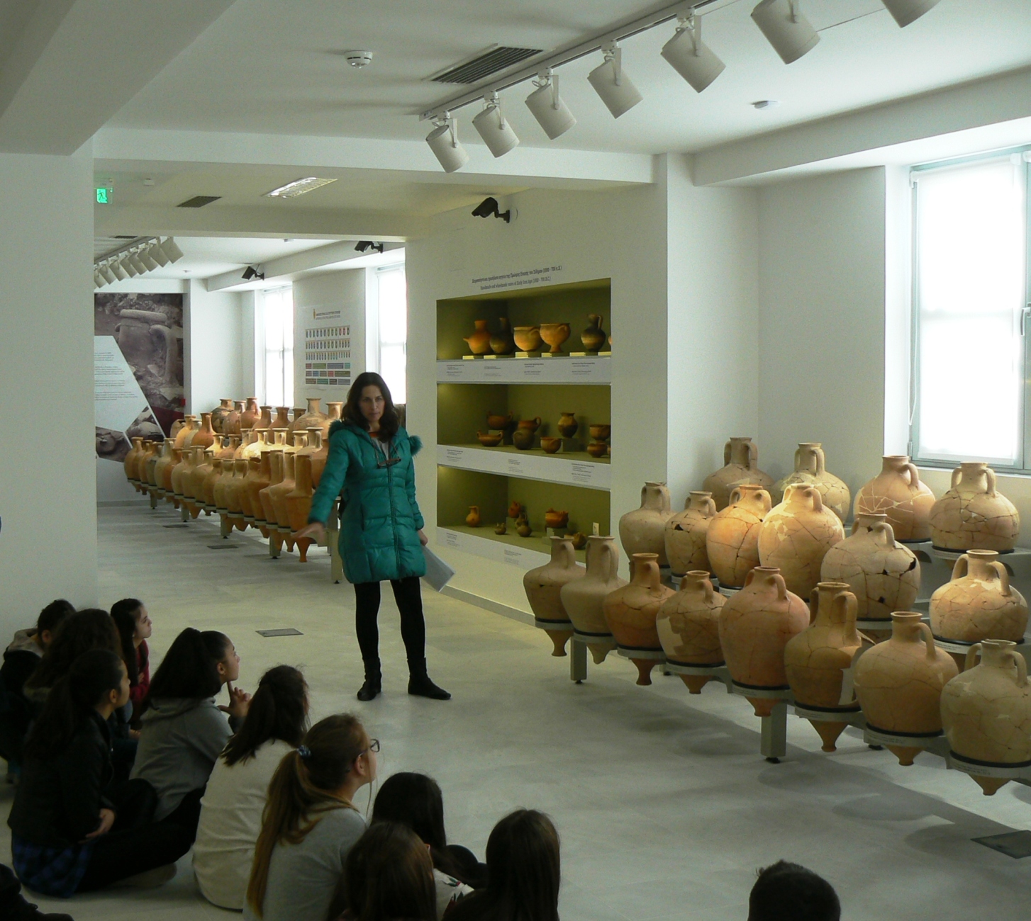 Β) Μετά την ξενάγηση δίνεται η ευκαιρία στα παιδιά να παίξουν επιμορφωτικά παιχνίδια στον ειδικά διαμορφωμένο κεντρικό χώρο του ορόφου της Ε.Μ.Α.Μ. (π.χ. επιτραπέζιο παιχνίδι σχετικό με τη γεωγραφική εξάπλωση των αμφορέων∙ αντίστοιχο παιχνίδι με τα σχήματα των αγγείων∙ ερωτηματολόγια πολλαπλών επιλογών∙ σχεδίαση αγγείων κ.α.).