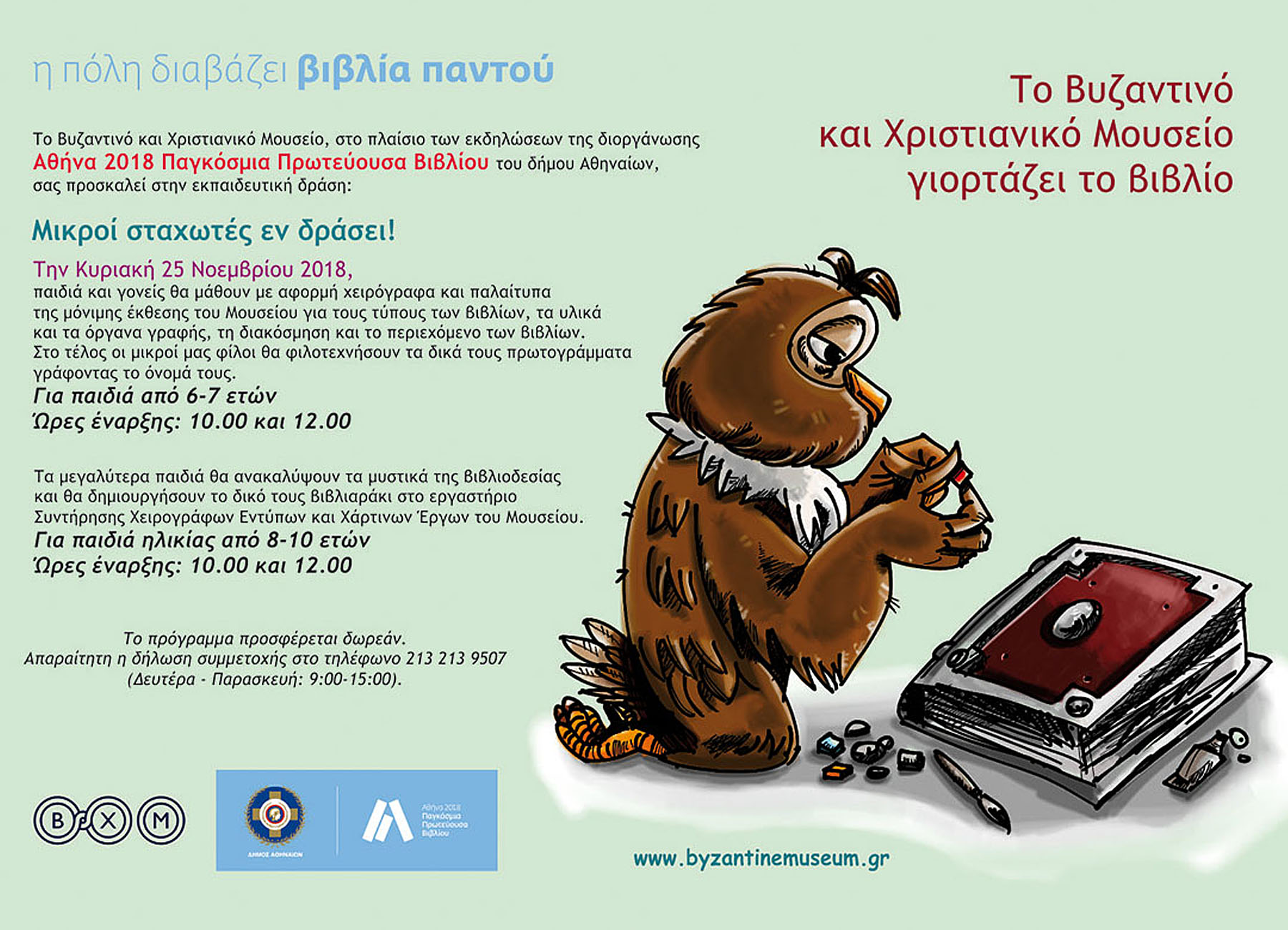 Την Κυριακή 25 Νοεμβρίου 2018, το Βυζαντινό και Χριστιανικό Μουσείο διοργανώνει εκπαιδευτικά προγράμματα με θέμα «Μικροί σταχωτές εν δράσει!».