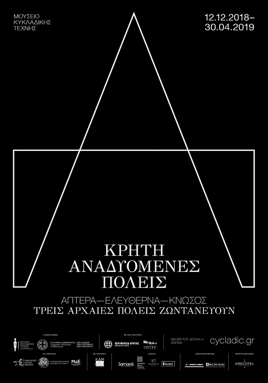 Το Μουσείο Κυκλαδικής Τέχνης και οι Περιφερειακές Διευθύνσεις του ΥΠ.ΠΟ.Α (Εφορεία Αρχαιοτήτων Χανίων - Εφορεία Αρχαιοτήτων Ρεθύμνου - Εφορεία Αρχαιοτήτων Ηρακλείου), συνδιοργανώνουν την περιοδική έκθεση με τίτλο «Κρήτη. Αναδυόμενες Πόλεις: Άπτερα ― Ελεύθερνα ― Κνωσός. Τρεις αρχαίες πόλεις ζωντανεύουν», που θα διαρκέσει από 12 Δεκεμβρίου 2018 μέχρι 30 Απριλίου 2019.