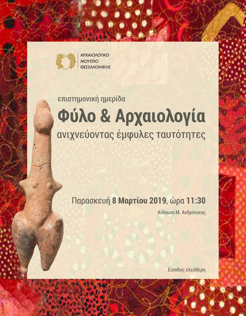 Με αφορμή την Παγκόσμια Ημέρα της Γυναίκας το Αρχαιολογικό Μουσείο Θεσσαλονίκης διοργανώνει την Παρασκευή 8 Μαρτίου 2019 ημερίδα με θέμα: «Φύλο & Αρχαιολογία ανιχνεύοντας έμφυλες ταυτότητες».Ομιλητές:Δήμητρα Κοκκινίδου, Δρ. ΑρχαιολόγοςΧριστίνα Μαραγκού, Δρ. ΑρχαιολόγοςΕύη Παπαδοπούλου, Δρ. Αρχαιολόγος ΑΜΘΚωνσταντίνα Παπακώστα, Δρ. ΑρχαιολόγοςΌλγα Σακαλή, Δρ. ΑρχαιολόγοςΕυαγγελία Στεφανή, Δρ. Αρχαιολόγος, Διευθύντρια ΑΜΘΦώτης Υφαντίδης, Δρ. Αρχαιολόγος
