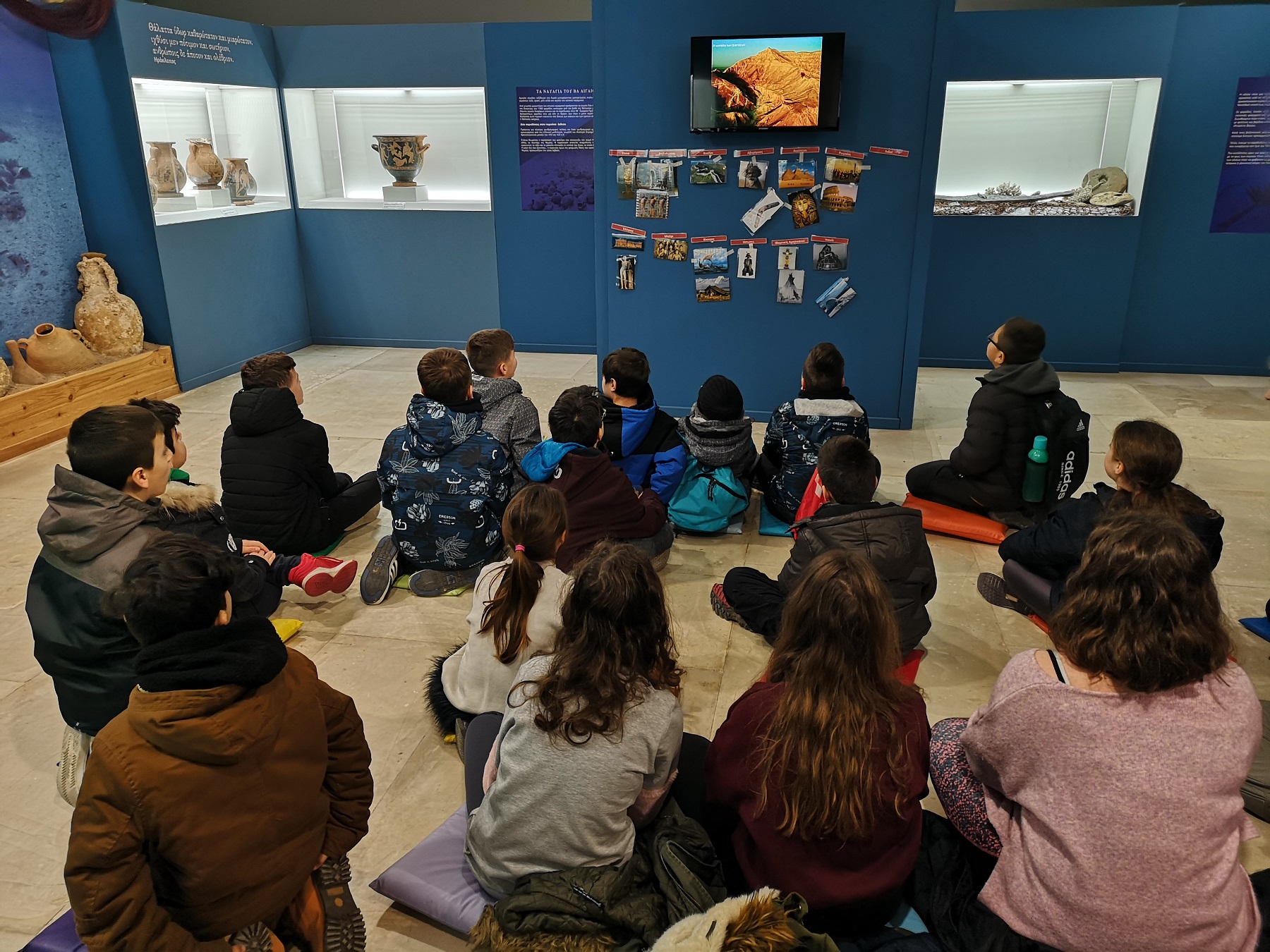 Τα παιδιά διεξάγουν έρευνα στην έκθεση με τη χρήση ειδικών καρτελών και αντικειμένων.