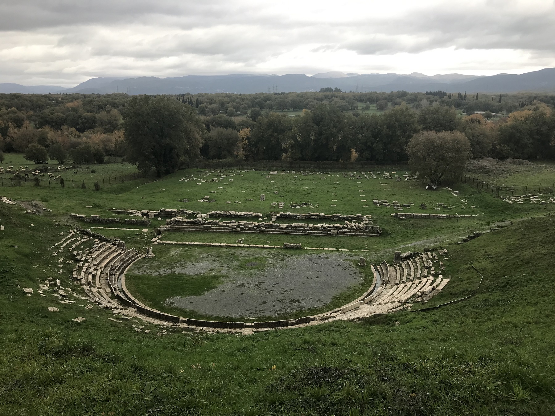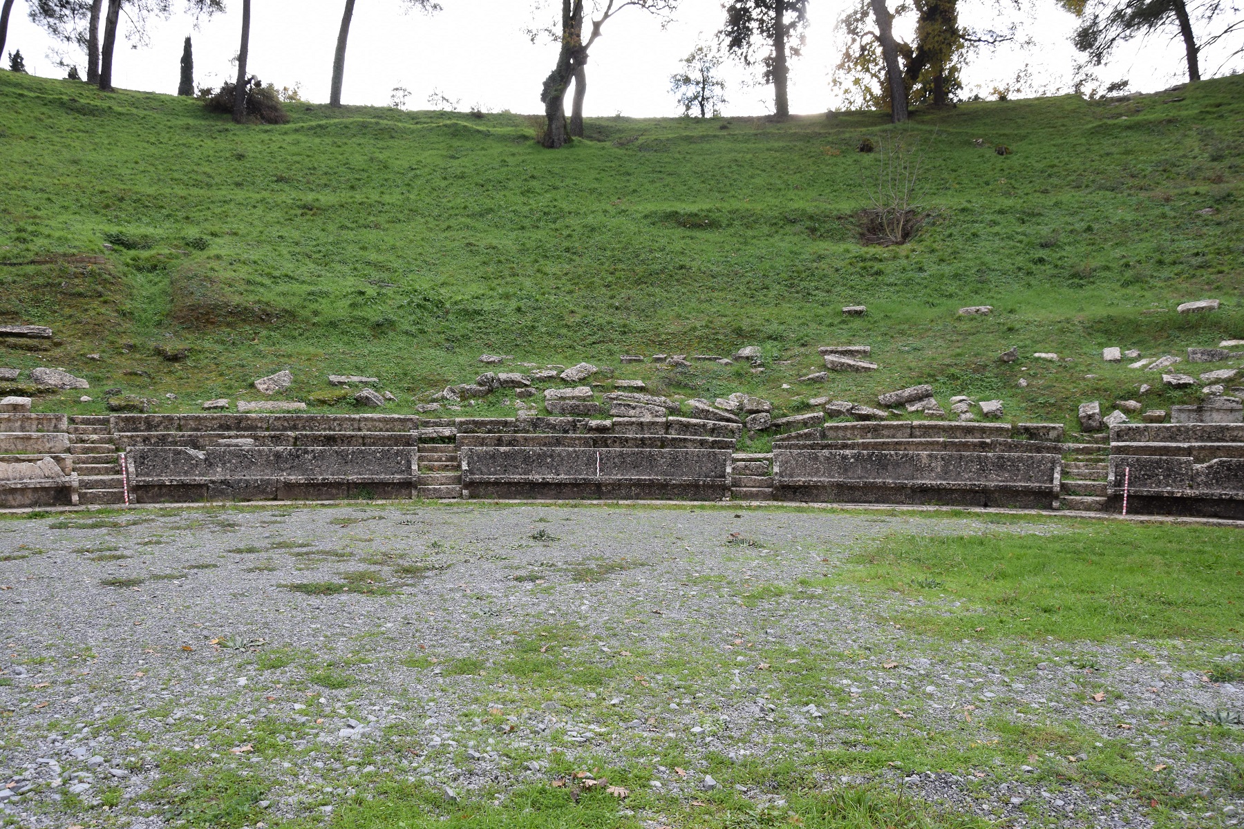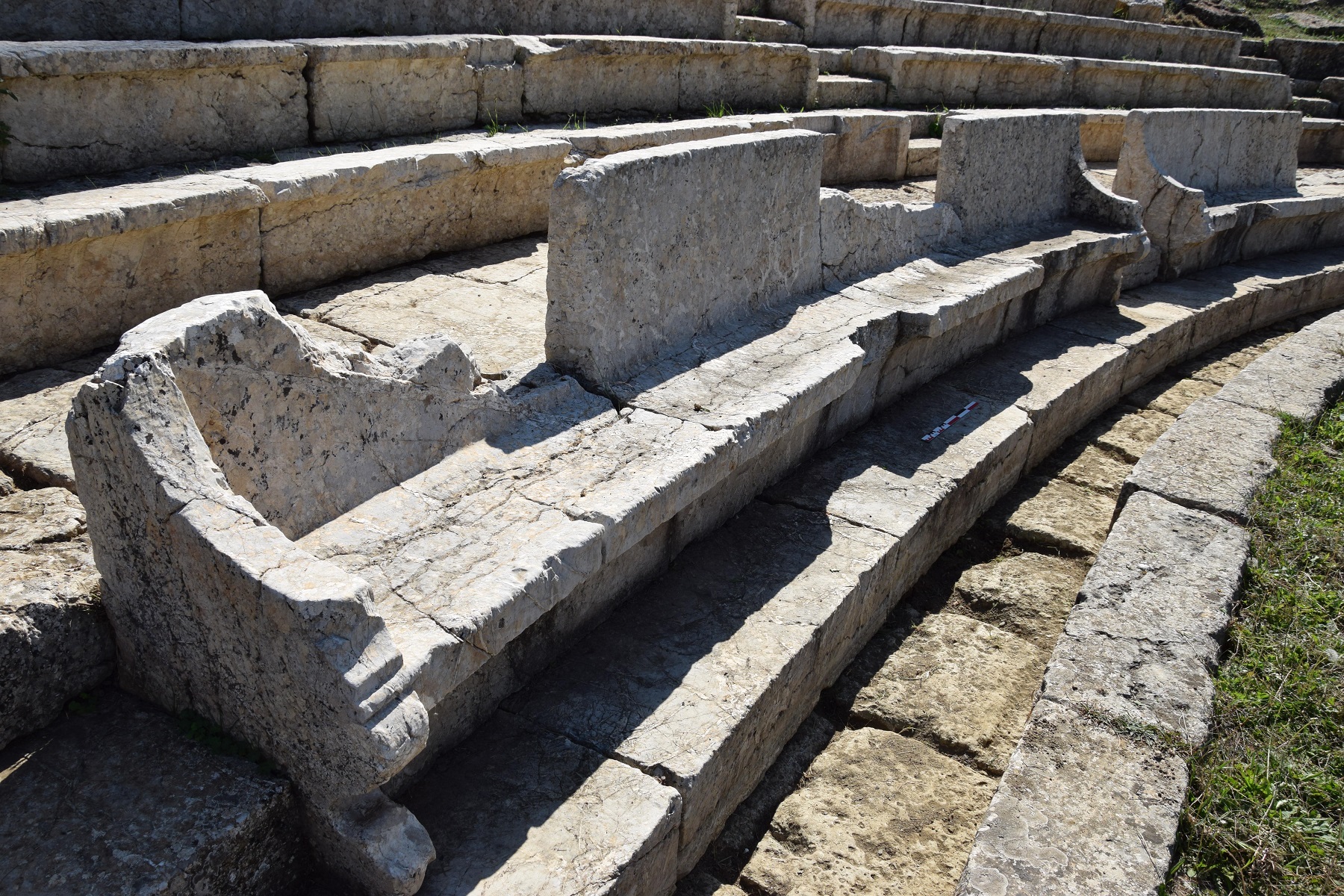 Α) η αποκατάσταση των κερκίδων Β και Γ του αρχαίου θεάτρου (στερέωση, συγκόλληση, συμπλήρωση με φυσικό τεχνητό λίθο και ανάταξη των κατά χώρα σωζόμενων αρχιτεκτονικών μελών), Β) συντήρηση του συνόλου των κατά χώραν σωζόμενων αρχιτεκτονικών μελών των κερκίδων Β και Γ (χημικός και μηχανικός καθαρισμός, πλήρωση ρηγμάτων και στερεώσεις), Γ) η αποτύπωση της υπάρχουσας κατάστασης του συνόλου του κοίλου με σύγχρονες μεθόδους (δισδιάστατη και τρισδιάστατη φωτογραμμετρική αποτύπωση του μνημείου), Δ) υποστηρικτικές εργασίες πεδίου (αποψιλώσεις, αποχωματώσεις, ανασκαφικοί καθαρισμοί και διερευνητικές τομές), Ε) η εκπόνηση μελετών μικρής έκτασης για ειδικά ζητήματα που θα προκύψουν κατά την εκτέλεση των παραπάνω εργασιών και θα υποστηρίξουν αποτελεσματικά την εκτέλεση των εργασιών αυτών, ΣΤ)την προμήθεια ηλεκτροκίνητου αμαξιδίου για τη μεταφορά ΑΜεΑ από την είσοδο του αρχαιολογικού χώρου στο χώρο του θεάτρου, και Ζ) η εκπόνηση, κατασκευή και τοποθέτηση δίγλωσσων πινακίδων πληροφόρησης, καθώς και η έκδοση δίγλωσσου και σε γλώσσα Braille ενημερωτικού φυλλαδίου για το έργο που θα εκτελεσθεί.