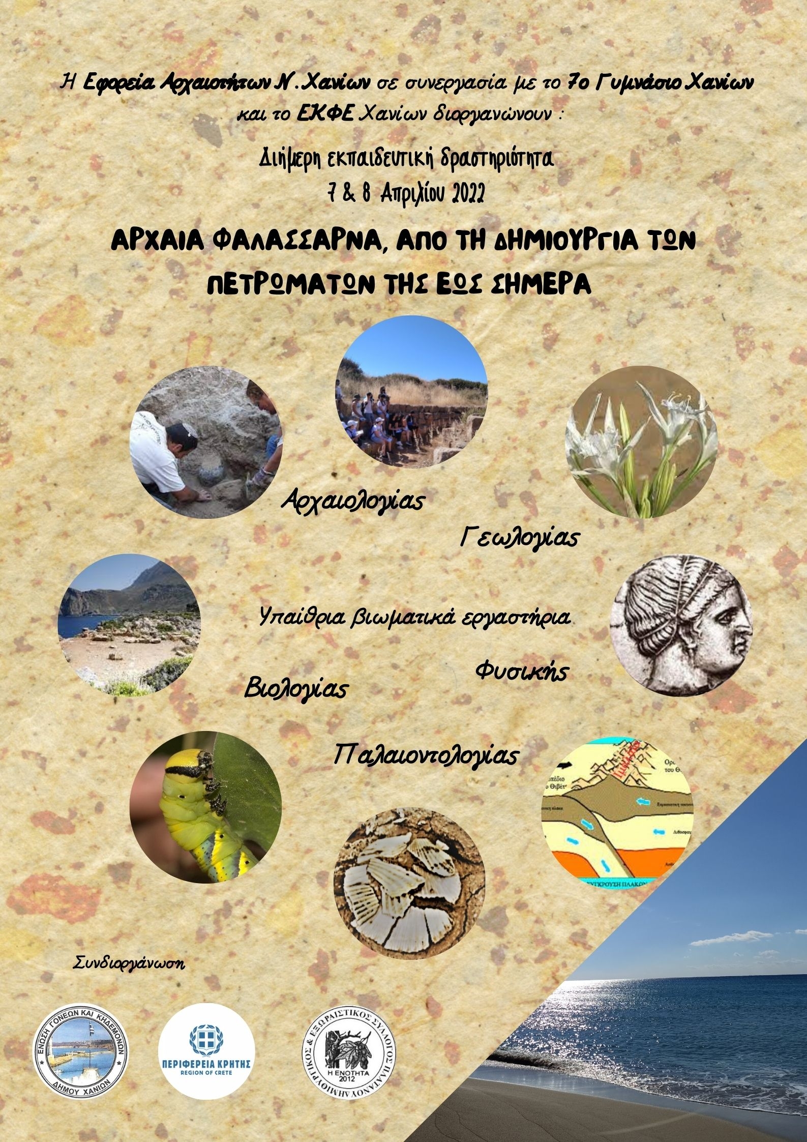 Η Εφορεία Αρχαιοτήτων Χανίων, το 7ο Γυμνάσιο Χανίων, η Δ.Δ.Ε. Χανίων, και το Ε.Κ.Φ.Ε. Χανίων σε συνεργασία με την Ένωση Γονέων, διοργανώνουν διήμερη εκπαιδευτική δραστηριότητα με θέμα «Αρχαία Φαλάσαρνα, από τη δημιουργία των πετρωμάτων της, έως σήμερα».