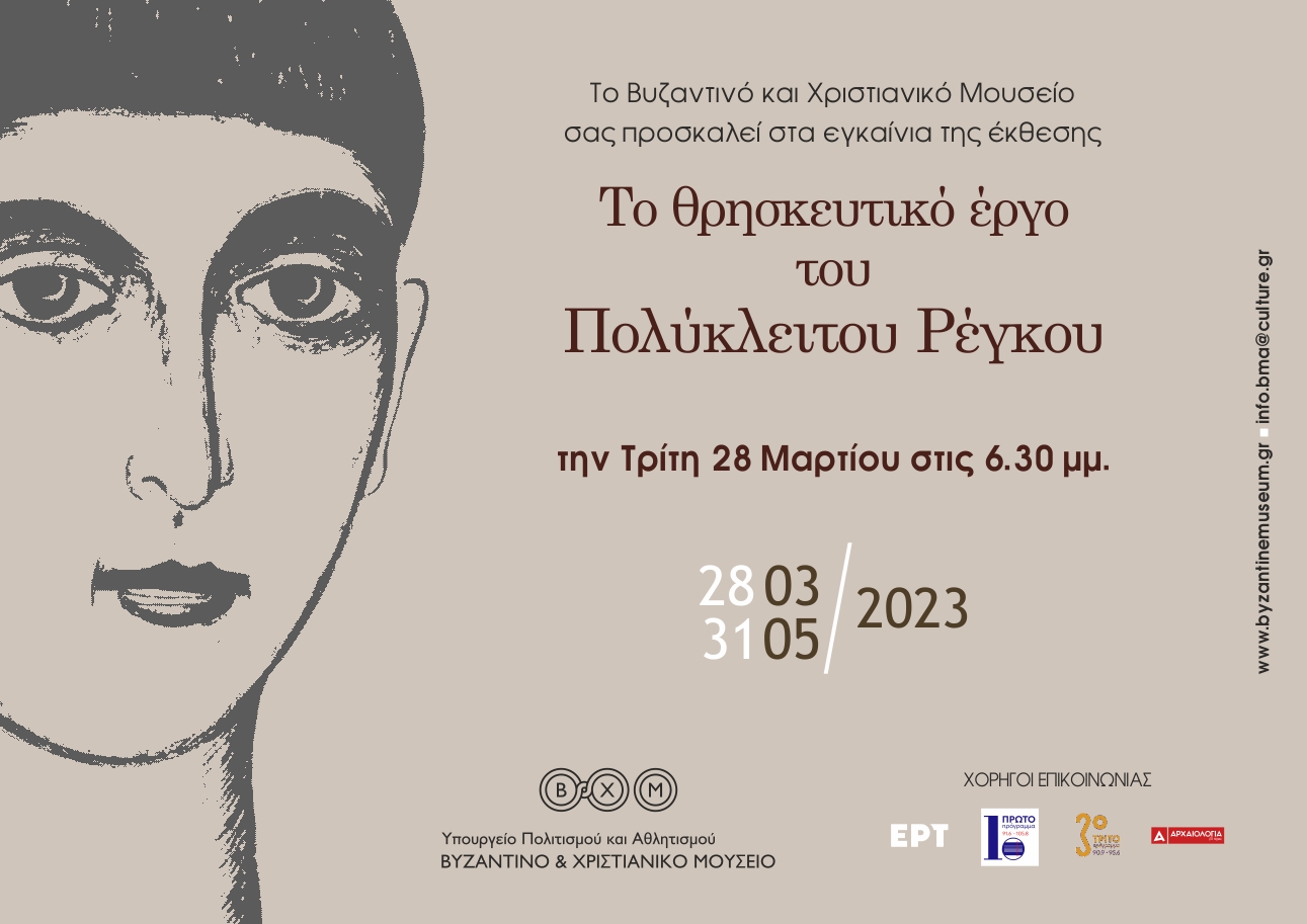 Στις 28 Μαρτίου 2023, ώρα 18:30, εγκαινιάζεται στο Βυζαντινό & Χριστιανικό Μουσείο περιοδική έκθεση αφιερωμένη στο θρησκευτικό έργο του Πολύκλειτου Ρέγκου.