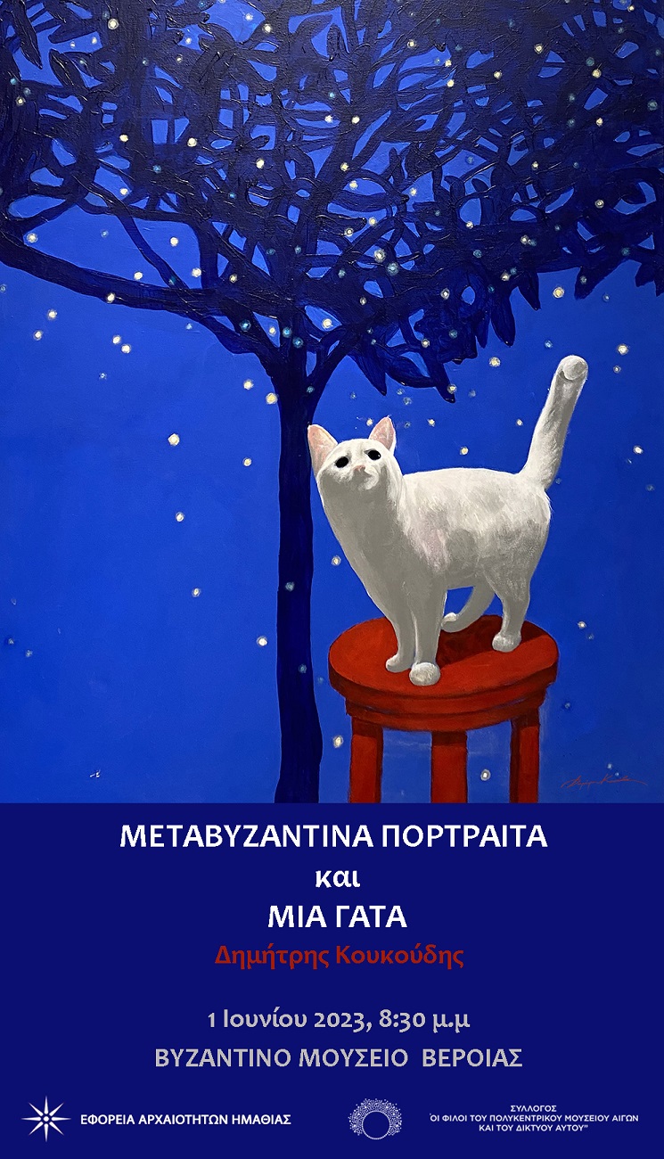 Η περιοδική έκθεση «Μεταβυζαντινά πορτραίτα και μια γάτα» που παρουσιάζεται στο Βυζαντινό Μουσείο της Βέροιας οργανώνεται από την ΕΦΑ Ημαθίας με την συνεργασία του Συλλόγου των Φίλων του Πολυκεντρικού Μουσείου των Αιγών και του Δικτύου του.