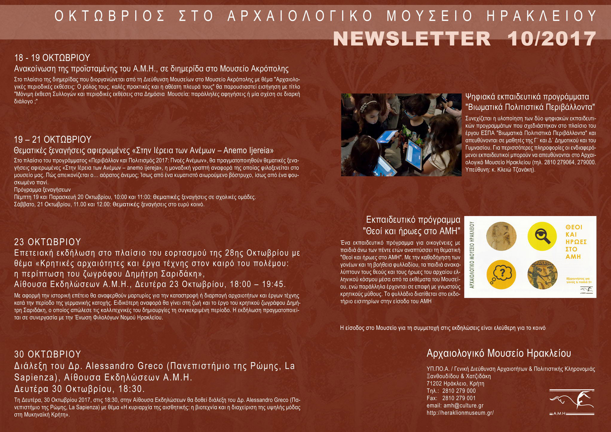 Με αφορμή την ιστορική επέτειο θα αναφερθούν μαρτυρίες για την καταστροφή ή διαρπαγή αρχαιοτήτων και έργων τέχνης κατά την περίοδο της γερμανικής κατοχής. Ειδικότερη αναφορά θα γίνει στη ζωή και το έργο του κρητικού ζωγράφου Δημήτρη Σαριδάκη, ο οποίος απώλεσε τις καλλιτεχνικές του δημιουργίες τη συγκεκριμένη περίοδο. Η εκδήλωση πραγματοποιείται σε συνεργασία με την Ένωση Φιλολόγων Νομού Ηρακλείου.