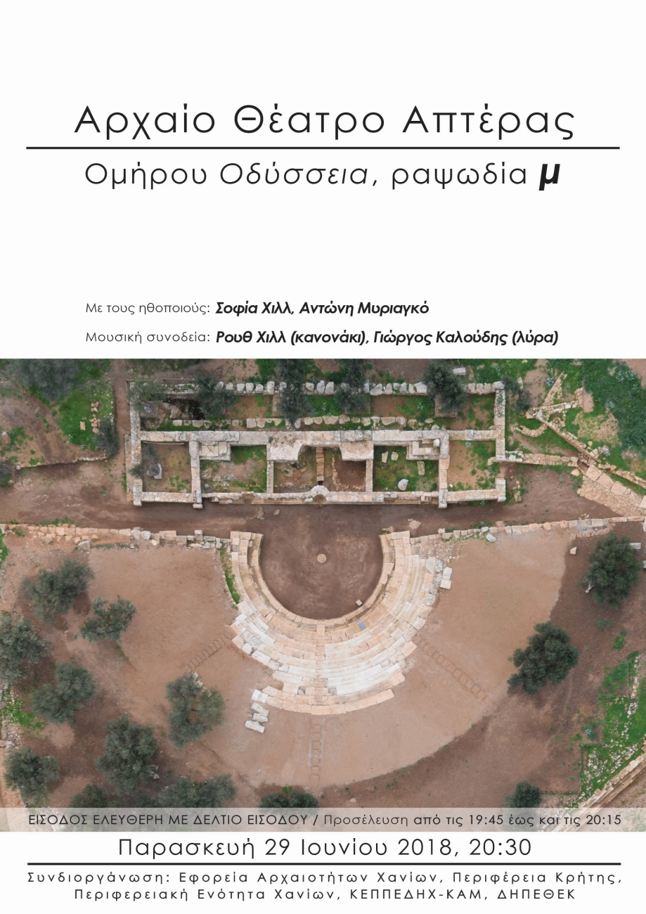 Διάθεση αριθμημένων δελτίων εισόδου την Δευτέρα 18 και την Δευτέρα 25 Ιουνίου από τα γραφεία της Εφορείας Αρχαιοτήτων Χανίων στη Στοά Βαρδινογιάννη-4ο όροφος (δύο δελτία ανά άτομο)