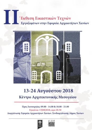 Στο πλαίσιο των πολιτιστικών της δράσεων, η Εφορεία Αρχαιοτήτων Χανίων σε συνεργασία με την Κοινωφελή Επιχείρηση Πολιτισμού και Περιβάλλοντος Δήμου Χανίων-Κέντρο Αρχιτεκτονικής της Μεσογείου (ΚΕΠΠΕΔΗΧ-ΚΑΜ) διοργανώνει και σας προσκαλεί στη 2η Έκθεση Εικαστικών Τεχνών των εργαζομένων της.