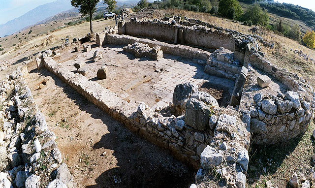 In Platanos, in region “Ovriasa”, a group of French researchers, after their wanderings to the region under difficult conditions, since the area is full of ilexes and fields with olive trees, report that the place was inhabited from the Hellenistic period and note that during the early Byzantine period there was significant presence there. This conclusion is confirmed by the revelation of two parallel basilicas beneath the castle in the area. These are two basilicas of approximately the same dimensions, with semicircular apse on the eastern side and a narthex to the west. As far as the first basilica is concerned, a three lobed arched opening (“trivilon”), that comprises the main entrance to the church from the inner narthex, and saving parts from the “sinthronon” inside the sanctuary are basically found in churches of the early Christian period, while occasional ceramic slates, that covered once the floor, were revealed, but the plaster inside the walls indicates the underlying layer of fresco or mosaic.