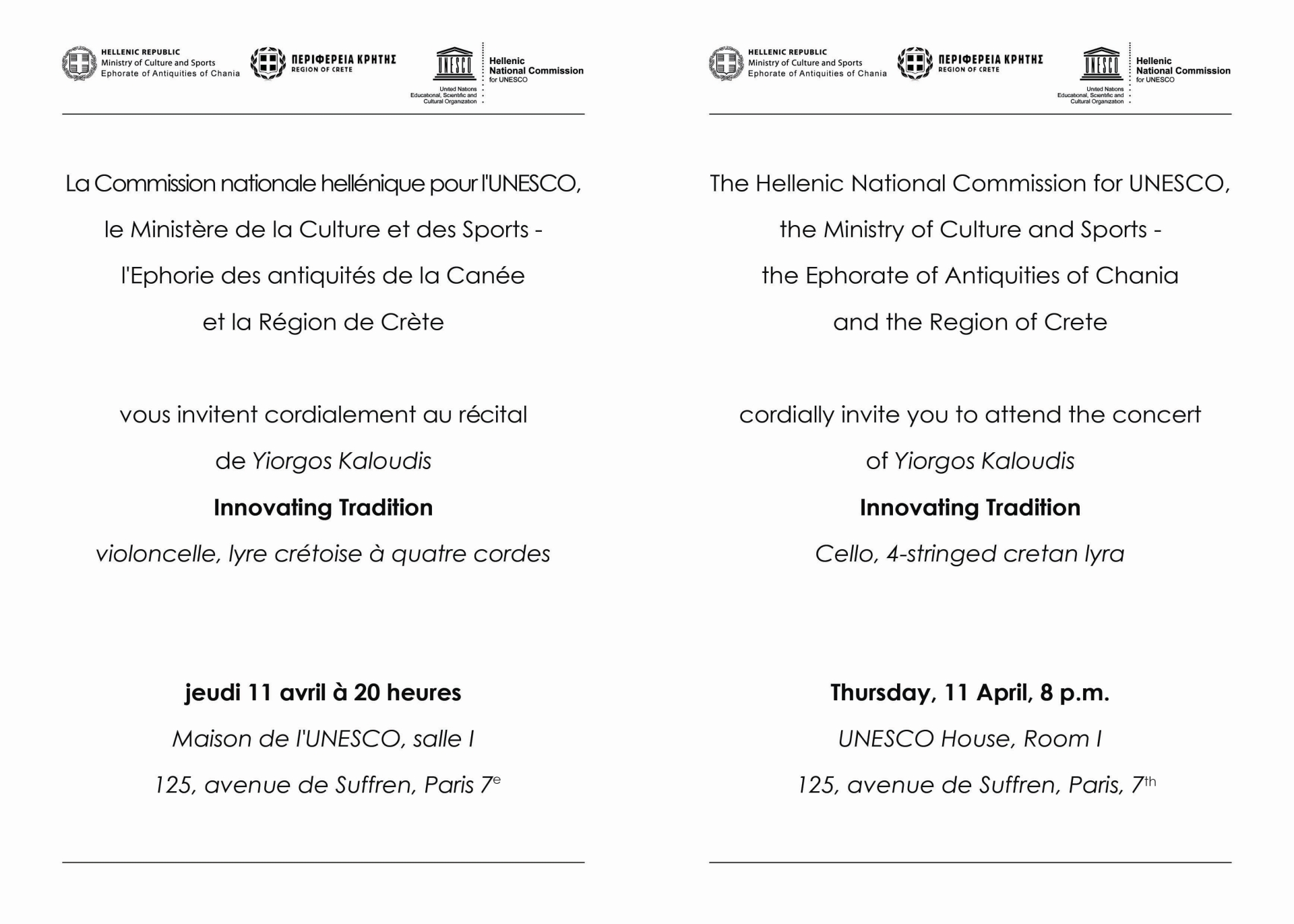 Innovating Tradition | UNESCO auditorium (Paris) | Recital cello, 4-stringed creatan lyra by Yiorgos Kaloudis